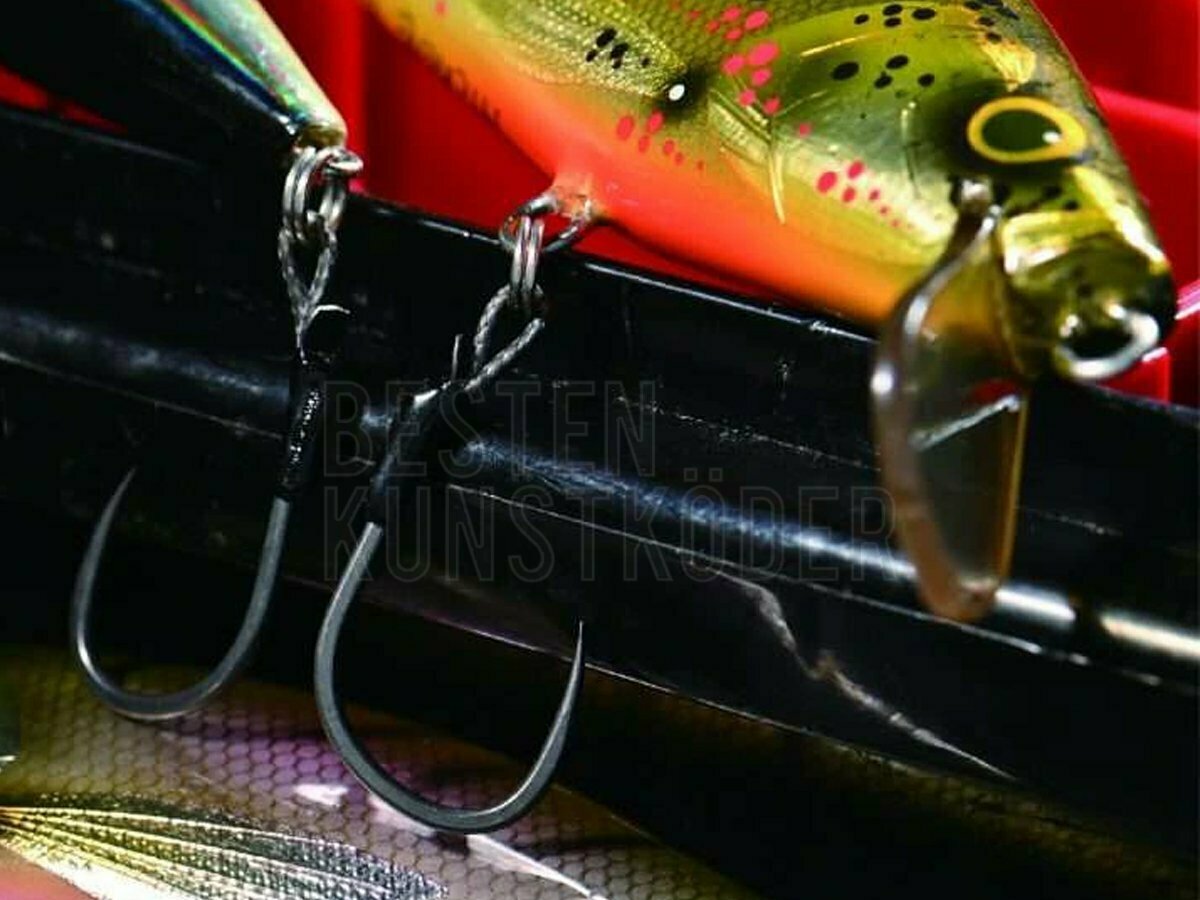Im Sortiment von BKK finden Sie Drillinge, Offsethaken, Einzelhaken und Stinger Rigs, die speziell für den Einsatz mit Kunstködern entwickelt wurden. Ob Wobbler, Gummifische oder Jigs – BKK Haken sorgen für maximale Bissverwertung und sicheren Halt im Drill.