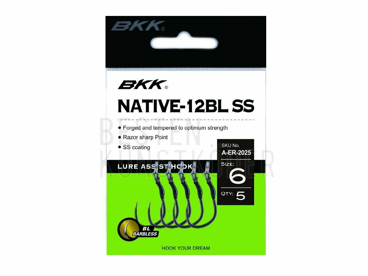BKK Native-12 SS ist ein hochwertiger, widerhakenloser Einzelhaken, der als Ersatz für herkömmliche Drillingshaken an Kunstködern entwickelt wurde. Besonders geeignet zum Austausch von Trebles an Wobblern für Forelle und Meerforelle.