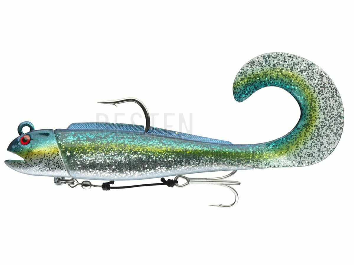 Der D-Wolf mit Curly Tail spielt schon bei leichtem Zug aufreizend mit dem Schwanz und überzeugte bei unseren Tests bereits zahlreiche Heilbutte und Dorsche und kann sogar mit der Spinnrolle und einer kräftigen Pilkrute gefischt werden – ideal bei mittlerer bis geringer Drift und zum Durchsuchen der Wasserschichten.