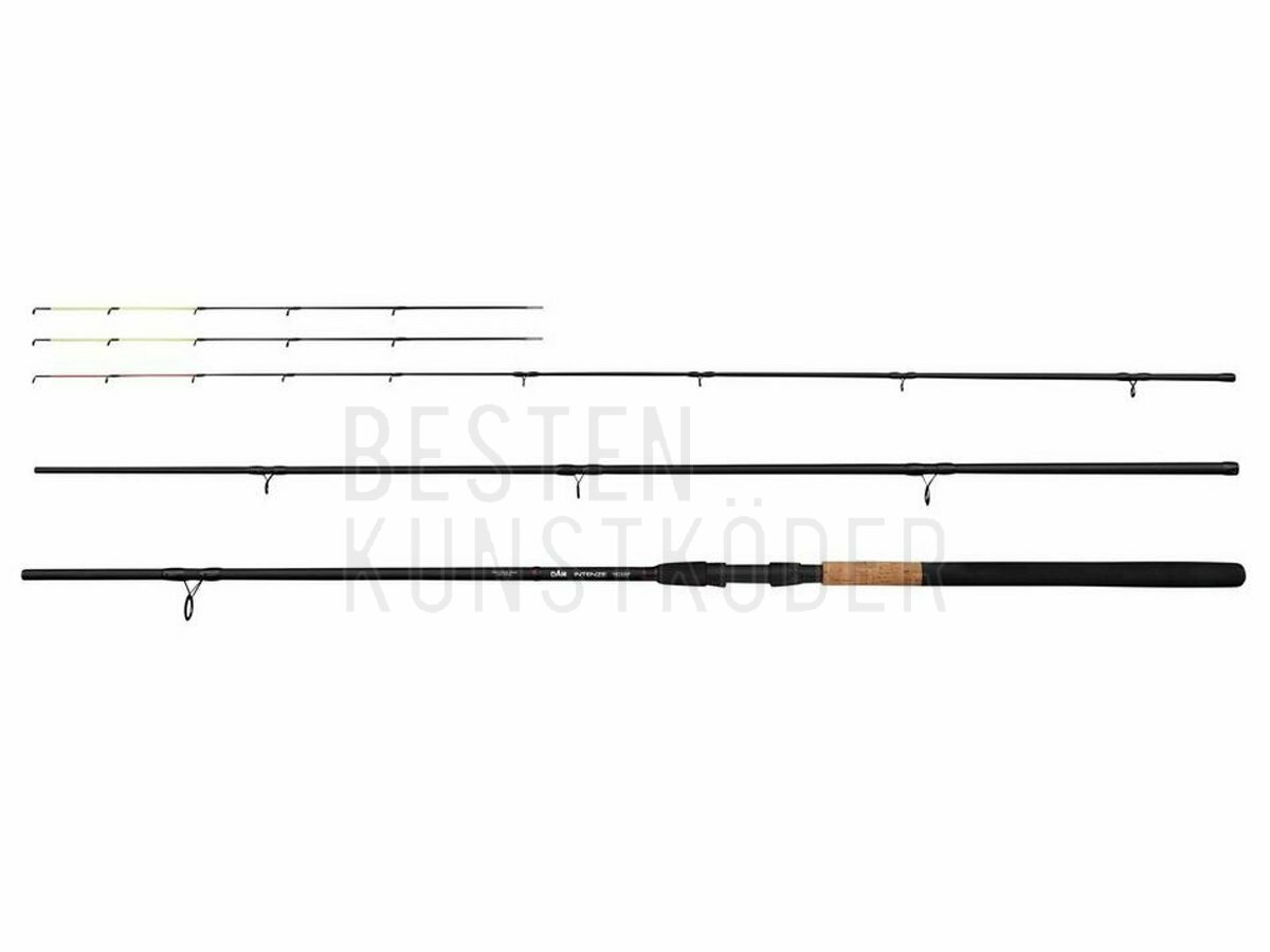 INTENZE Method-Ruten sind für den Method-Feeder-Angler konzipiert, der eine Rutenausführung mit starker, gut ausbalancierter Blankkonstruktion und verlässlicher, reaktionsschneller Aktion sucht. Im hinteren und mittleren Rutenteil sorgt ausreichend Rückgrat für genügend Kraft beim Weitwurf. Die Ruten sind mit DPS-Rollenhaltern und leichten, schwarzen LTS-Ringen ausgestattet. Der Griff besteht aus pflegeleichtem EVA + Kork und jede Rute verfügt über zwei unterschiedliche Spitzen: eine Carbonspitze (rot, steife Aktion) und eine Glasfaser-Spitze (gelb, weichere Aktion).