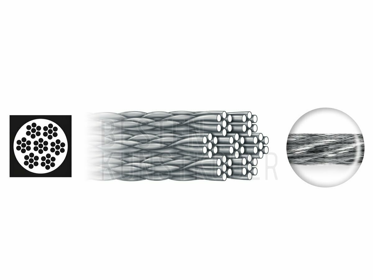 Das Vorfach besteht aus 49 Edelstahldrähten in einer 7x7 Konstruktion und ist dadurch deutlich weicher und flexibler als 1x7 Varianten. Ohne Nylonbeschichtung entsteht weniger Wasserwiderstand und der Köder kann sich natürlicher bewegen.
