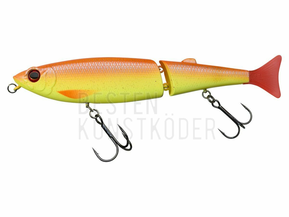 'Laute' Version des FREDDY CATWALK, unseres legendären, 2-teiligen Gleitköders. Perfekt für die Jagd auf Hecht, große Barsche und Schwarzbarsch. Entwickelt um auch unter schwierigen Bedingungen, wie z.B. trüberes Wasser, oder Wellengang mit entsprechender Geräusch-Kulisse unter Wasser, noch aufzufallen. Dieser kompakte Köder passt zu jedem mittelschweren Spinn- oder Baitcasting-Setup. Die charakteristische „S“-förmige Schwimmbewegung beim geraden Einholen kann durch gleichmäßige, leichte twitches nach links oder rechts verstärkt oder durch gelegentliche Stop-and-Go-Bewegungen noch verführerischer gemacht werden. Zwei integrierte rollende 30lb-Drehgelenke drehen sich um volle 360 ​​Grad, um das Hängenbleiben zu reduzieren und Ihre Haken bei harten Drills im Fischmaul an Ort und Stelle zu halten. Dieser kompakte Köder läßt sich weit werfen und ist ideal für die Erkundung flacher Buchten und das Angeln rund um Seerosenfelder, über Kraut und Strukturen an von Bäumen gesäumten Ufern. Um den Köder noch vielseitiger zu machen, versuchen Sie es mit einem John Weight am Bauchwirbel, um tiefere Wasserschichten zu erkunden.