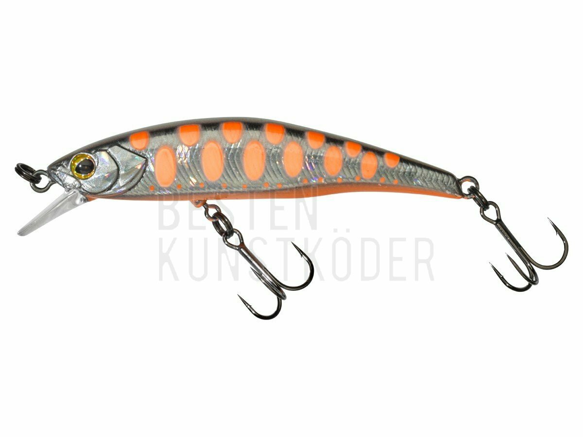 Der TRICOROLL KNOCKER 70 SHW ist eine schwerere, geräuscherzeugende Version des TRICOROLL RYUSHIN 70 SHW, einem kleinen Minnow-Köder. Durch die Zugabe einer Wolfram-Perle erhöht sich das Gewicht jedes Köders im Durchschnitt um 6%, was die Wurfgenauigkeit und -weite verbessert und eine zusätzliche Geräuschattraktion bietet, die den Fischen hilft, den Köder bei der Abdeckung großer Wasserflächen zu finden. SHW steht für Super Heavy Weight. Ideal zum Angeln auf Barsch, Forelle und Aland. Der Köder funktioniert beim Werfen flussaufwärts im Absinken und bei flussabwärts Drift, wenn der Angler dem Köder mit einer halbgespannten Leine folgt. Die kleinste Rutenbewegung erzeugt Druck auf die Lippe, deren dreieckige Form hilft, den Köder in den schnellsten Strömungen stabil zu halten. Variieren Sie das Einholen mit kleinen Jerks, um Bisse zu provozieren. Diese Größe ist besonders geeignet für mittlere bisngroße Flüsse und Gebirgsseen. Bewältigt schnelle Strömungen, funktioniert aber ebenso gut in langsameren Bereichen. Um ein Ausschlitzen zu vermeiden, ist der Bauchhaken an einem rotierenden Wirbel befestigt, der sich um volle 360 Grad drehen kann. Ideal für Barsch- und Döbelangler. Der TRICOROLL RYUSHIN KNOCKER ist in vier Größen erhältlich. RYUSHIN bedeutet auf Japanisch „Mitte des Flusses“.