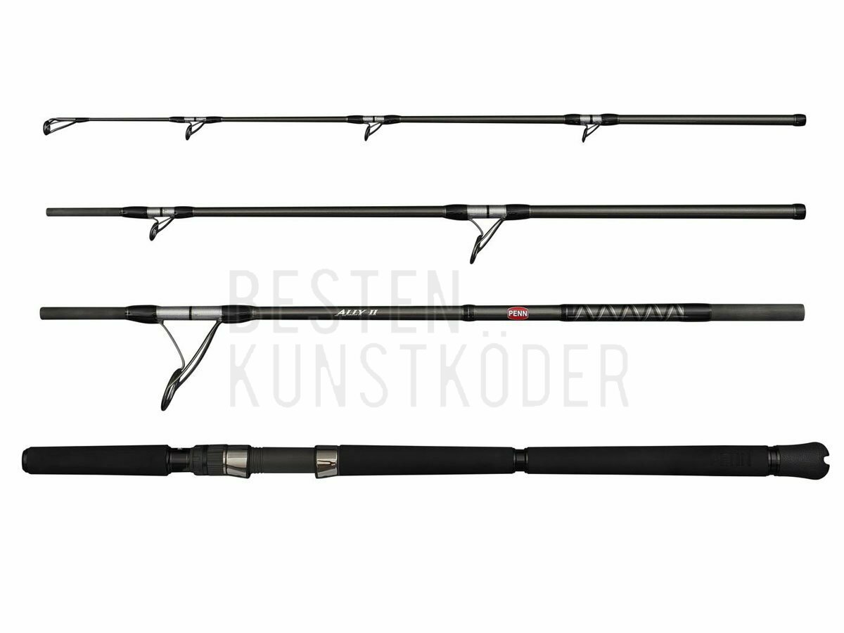 Die PENN® Ally II Offshore-Reiserutenserie ist so konzipiert, dass sie sich zum selbst abgelegensten Reiseziel sicher und leicht transportieren lässt. Diese Offshore Thunfisch und Freiwasser Modelle sind speziell für Angler konzipiert wurden, die mit Stickbaits oder anderen Ködern auf große Thunfische oder andere kampfstarke andere Freiwasserräuber angeln möchten. In dieser Preiskategorie ist es unmöglich etwas Besseres zu finden. Obwohl nur hochwertige Komponenten verwendet wurden, beim Blank und den Fuji-Rutenringen, sowie beim Fuji Rollenhalter. Die Ruten ist 4-teilig und lässt sich ganz gemütlich in jedem Kofferverstauen. Eine brutal gute Rute, zu einem mega fairen Preis!