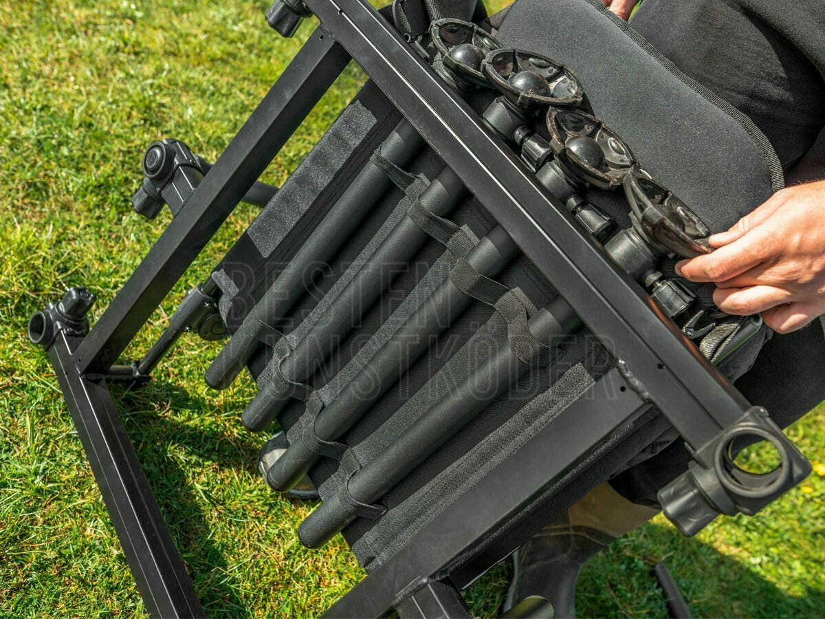 Der Absolute 36 Feeder Chair ist superstabil und wird mit vier 36 mm mitgelieferten Beinen sowie zwei optionalen 36 mm Banksticks angeboten. Damit kann jedes Offbox Zubehör, inklusive Seitentische mit zwei Beinklemmen, angebracht werden. Wie der Name es bereits verrät, ist er ideal für Feederangler, für die Stabilität bei der Montage von Zubehör, wie z.B. langen Rutenauflagen, entscheidend ist.