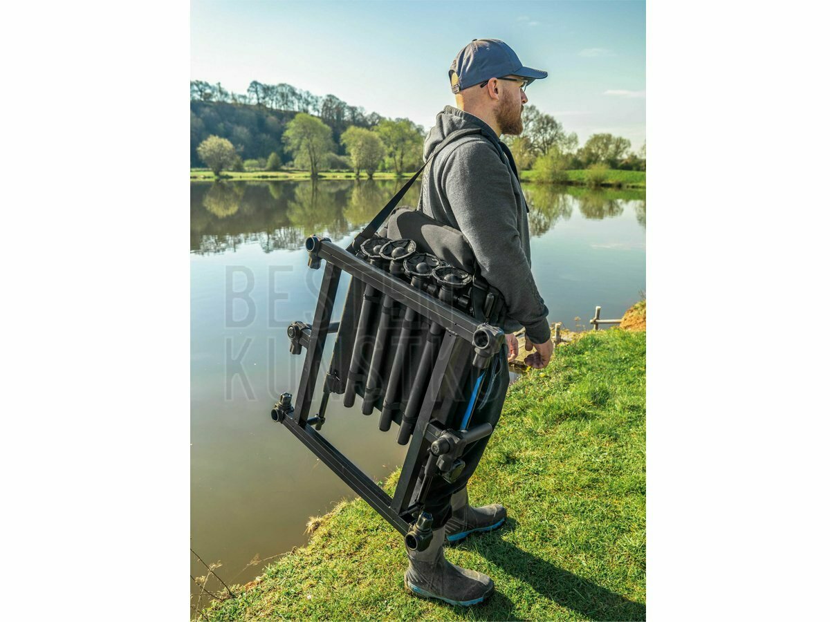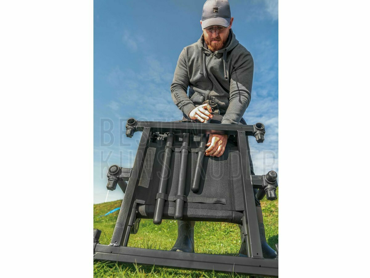 Mit seiner extrem bequemen Polsterung ist der Absolute 36 Feeder Chair perfekt für lange Angeltage. Aufgrund der klappbaren Rückenlehne und den abnehmbaren Beinen, die mit Hilfe der mitgelieferten Gurte an der Rückseite des Stuhls befestigt werden können, kann er leicht verstaut werden. Für einen leichten Transport befindet sich ein Schultergurt im Lieferumfang.