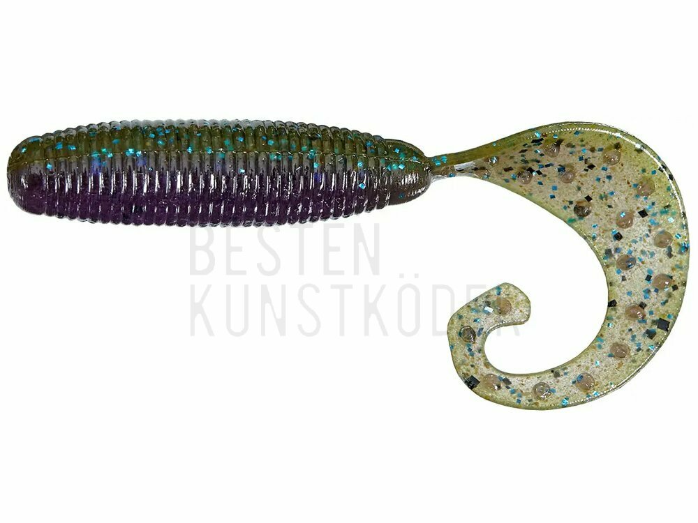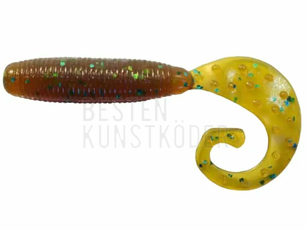 Reins Fat G-Tail Grub Köder hat eine gebogene Schwanzspitze, die einem „G“ ähnelt. Solcher Aufbau verstärkt beim Aufrollen das Spritzen des Wassers. Um die Kontaktfläche mit Wasser noch mehr zu vergrößern, wurde der Schwanz mit sichtbaren Ausläufern ausgestattet. Fat G-Tail Grub ist in drei Größen (5 cm, 7,5 cm und 10 cm) und vielen Farboptionen erhältlich. Je nach Größe eignet sich dieser Köder perfekt zum Angeln von Barschen, Forellen, Zandern oder Hechten. Am besten verstärkt man diesen Köder mit einem klassischen Jigkopf oder verwendet die Texas-Rig-Methode. Eine weitere Stärke dieses Köders ist der Attraktor, mit dem er getränkt wurde. Er steigert die Zahl der Bisse und die Zeit des Haltens des Köders vom Fisch im Maul. Dadurch hat man mehr Anschläge und Einholen.