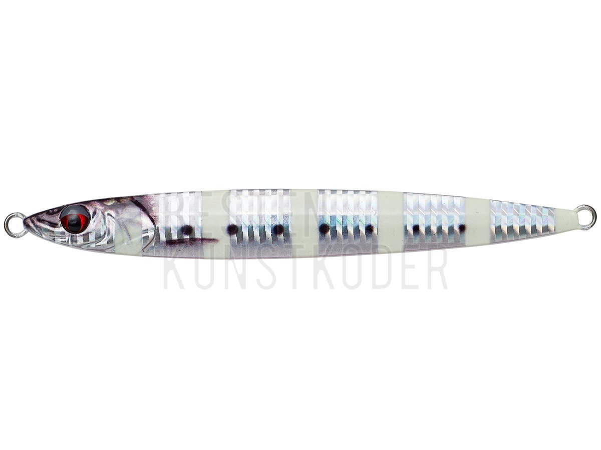 Basierend auf dem Scan einer Baby-Sardine wurde der Slim Jig Minnow für weite Würfe und das schnelle Erreichen der Tiefe auch bei stärkerer Strömung designt. Trotz der relativ schnellen Sinkrate schimmert und vibriert der Köder sehr lebendig im Absinken. Der Slim Jig Minnow ist designt fürs entspannte Jiggen. Um Bisse zu bekommen, brauchen Sie weder viel Tempo noch Kraftaufwand. Der Köder hat eine eingebaute Stahl-Rasselkammer für lauten Sound beim Jiggen. Der Slim Jig Minnow hat eine Hybrid-Aktion und ist perfekt fürs Vertical Jigging, Shore Jigging und Cast Jigging.