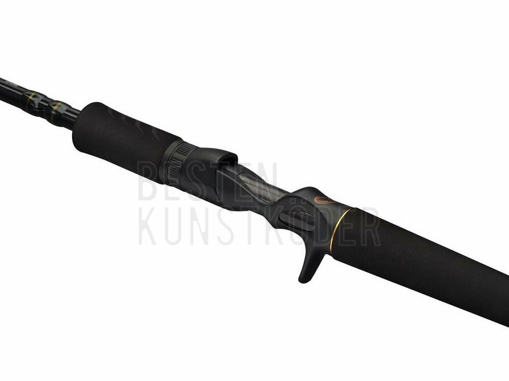 Entwickelt mit einem kraftvollen, progressiven Blank, der verstärkt ist, um unsere größten Swimbaits zu führen und zu werfen, sowie harte Bisse und Anschläge mit kräftigen Fischen zu bewältigen. Die schnelle Aktion ermöglicht viel Spiel zum Arbeiten des Köders, gefolgt von einem starken Rückgrat für perfekte Hakrate.