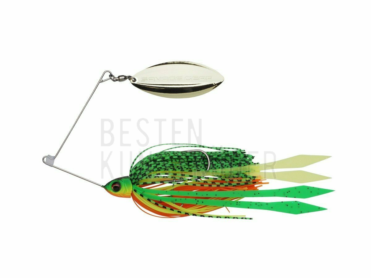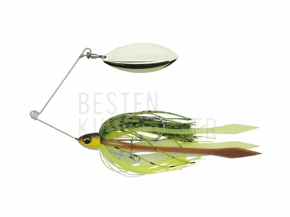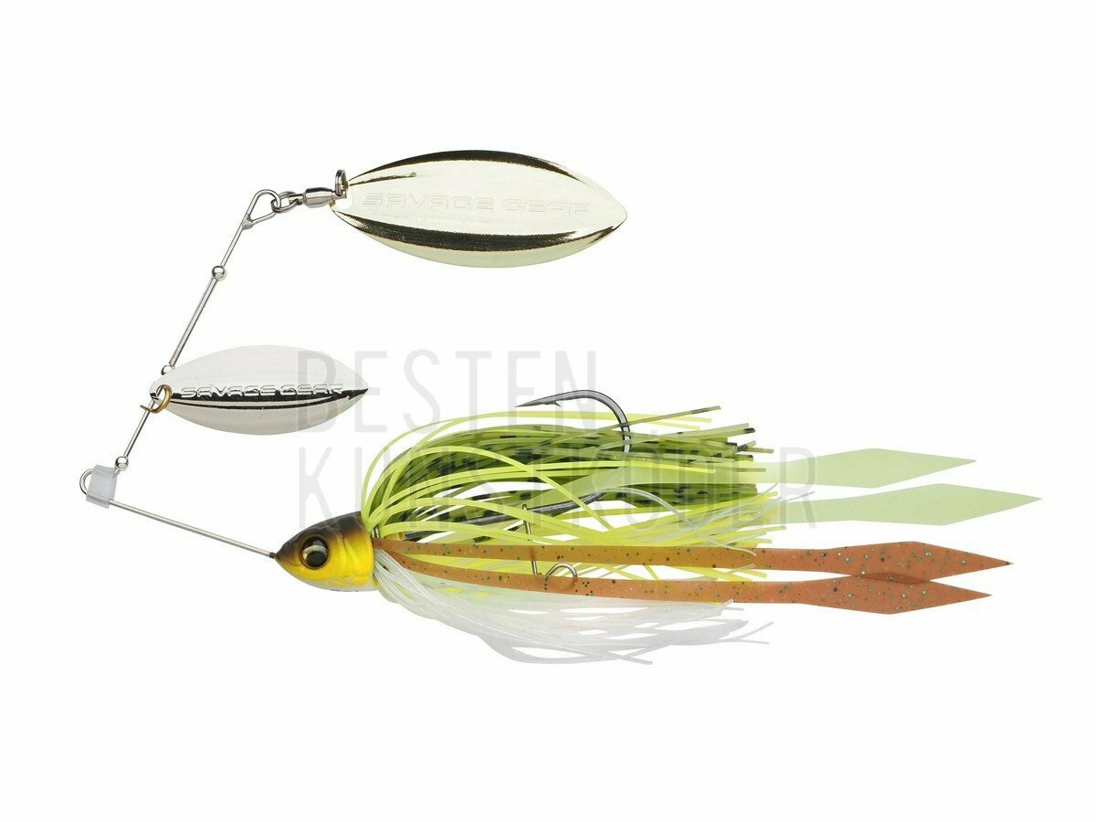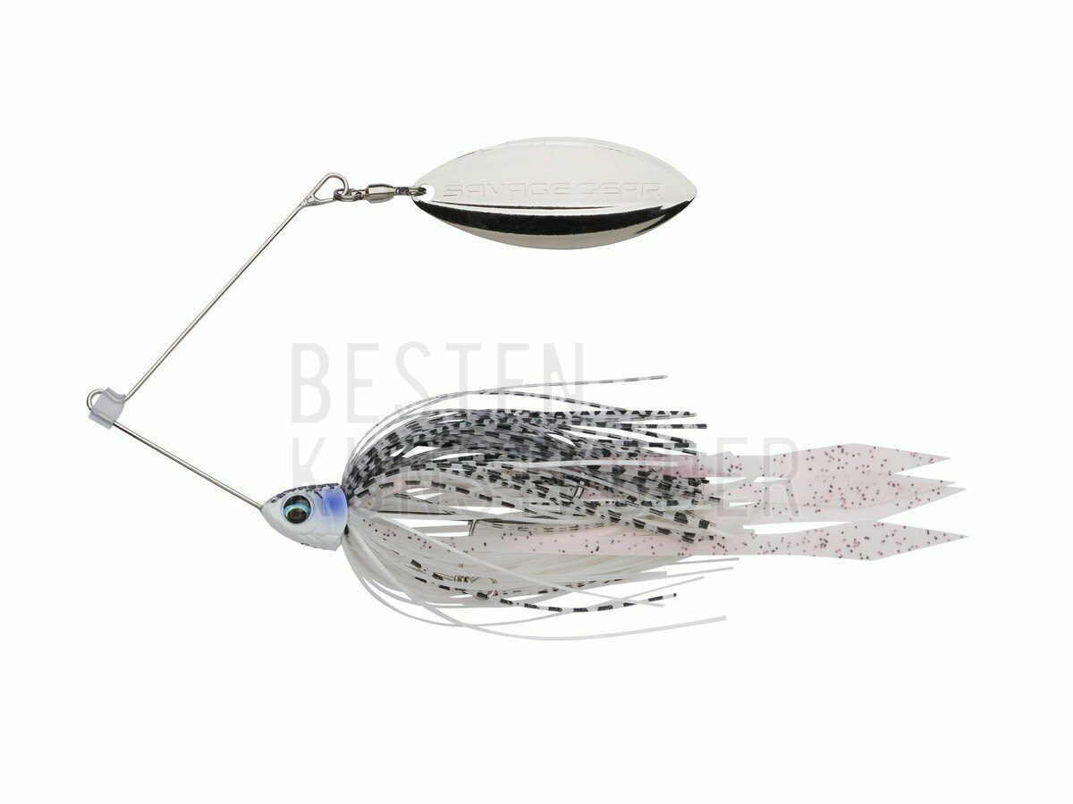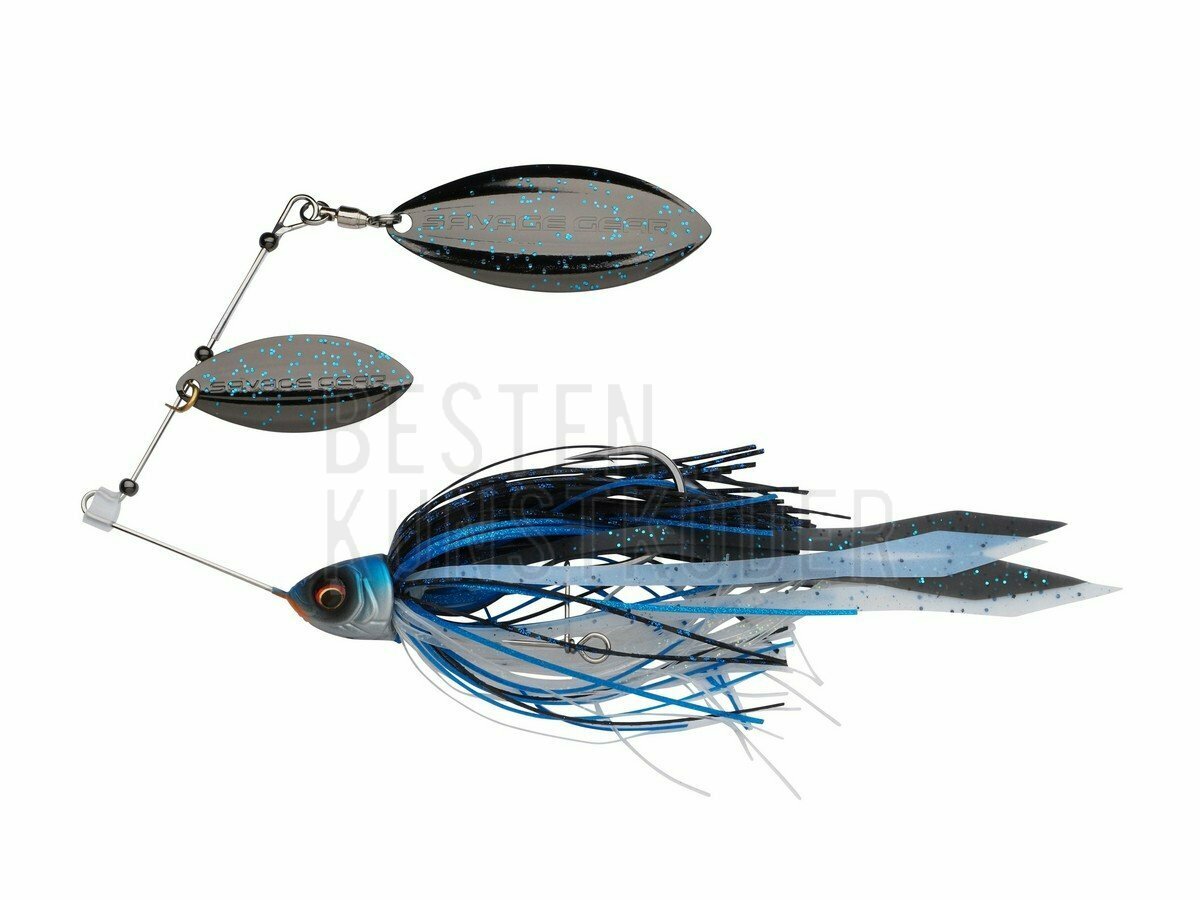 Der Da Lil Bush ist so konzipiert, dass er einer Vielzahl an Fischen standhält und dazu langlebig ist. Er verfügt über einen nahezu unzerstörbaren Edelstahl-Rahmen mit einer offenen Öse, damit der Köder beim Biss auch leicht und sicher gefaltet werden kann. Durch das Gummiband bleibt der Köder immer in perfekter Position. Das einzigartige „Bait - Lock System“ erlaubt das optimierende Anbringen, beispielsweise von zusätzlichen Drillingen, Gewichten oder Spinnerblättern. Die Willow-Leaf Spinnerblätter drehen sich wie die Rotoren von einem Hubschrauber und bringen dadurch viel Druck auf den Köder. Das überträgt sich direkt auf den Blank des Anglers. Ein einzigartiges Ködergefühl! Die Spinnerblätter sind sorgfältig ausgewählt, sie reflektieren und nutzen das Sonnen- bzw. Tageslicht perfekt aus. Bei der Auslieferung kommt zusätzlich eine XXL Weiden-Spinnerblatt mit, für richtig Krawall Unterwasser.