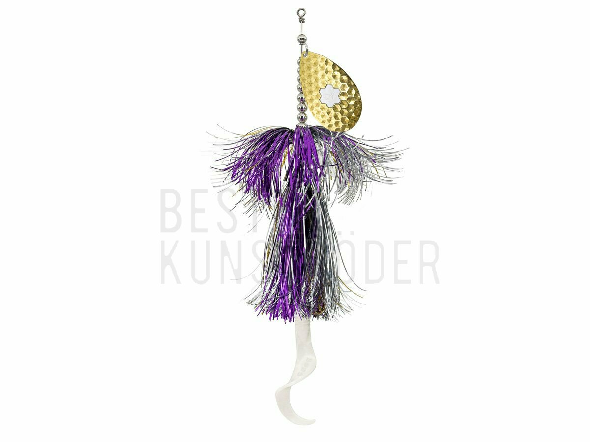 Entfesseln Sie die Savage Blade! Unser speziell entwickelter Bucktail wird aus hochwertigen Spezialkomponenten gefertigt und ist perfekt verarbeitet! Die Spezialklingen klappen im Flug ein und drehen sich beim Einholen sofort, sodass Sie beim Wurf keinen Zentimeter verschwenden. Ihr spezielles Design erzeugt starke Impulse und Vibrationen, um große Fische anzulocken.