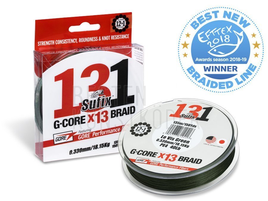 DAS NEUE GEFLECHT SUFIX 131 G-CORE aus 13 Fasern ist eine starke Konstruktion ohne Schwachstellen, garantiert zuverlässige Würfe, präzise Anschläge und sicheres Drillen. Eine Faser GORE®Performance Fiber mit 12 präzise vereflochtenen HMPE-Fasern umgeben, wodurch die Schnur perfekt rund und dadurch glatter, leiser und effektiver als andere Geflechte ist.