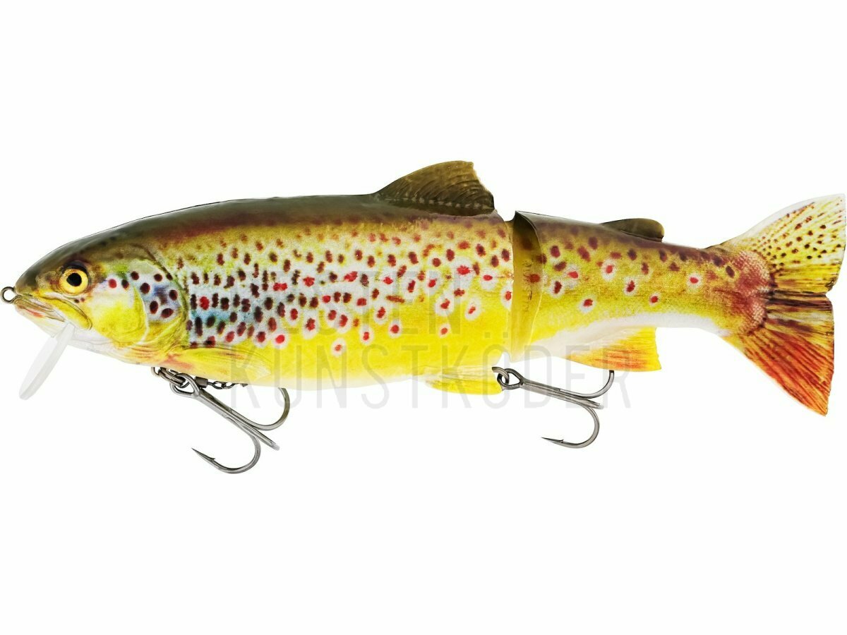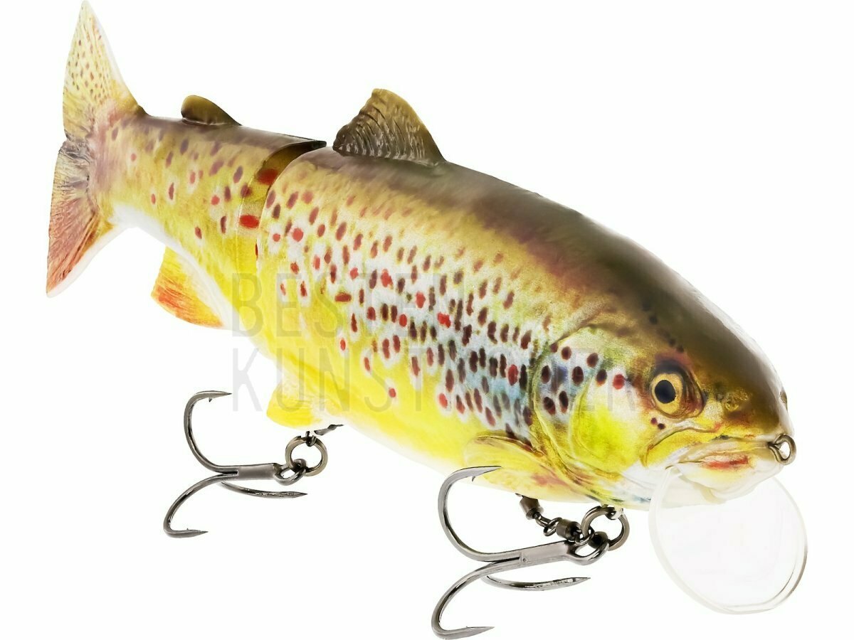 Der "Hyper Realistic" Tommy the Trout setzt neue Maßstäbe im Köderdesign und ist das naturgetreuste Forellen-Imitat, welches es je gab. Durch fortschrittliches 3D-Scannen und Präzisionsformen wird jedes Detail - von der Knochenstruktur bis hin zur perfekten Flossenplatzierung - akribisch nachgebildet, um einen unvergleichlichen Grad an Realismus zu erzielen. Die Wirbelkette ist in einem Schlitz im Bauch versteckt, um eine noch natürlichere Optik zu ermöglichen - ein Novum in der Branche! Er verfügt über hochauflösende Drucke, die von tatsächlichen Bildern der Forellen stammen, die in unserem Scanprozess verwendet wurden. Ausgestattet mit einem Jointed Stinger HD und einem netzverstärkten Gelenk, ist dieser Köder auf Haltbarkeit und Effizienz ausgelegt. Der Auslöser für den hinteren Drilling ist in den Körper integriert und löst beim Anhieb aus, was die Hakquote erhöht und mehr Fische ins Netz bringt. Tommy ist der perfekte Schleppköder für große Hechte und schwimmt mit einer leichten S-Kurve und einer rollenden Bewegung, die viel Licht im Wasser erzeugt. Bring deine Angelei auf ein neue Niveau, mit einem Köder, der so echt ist, dass selbst die Fische den Unterschied nicht bemerken werden!
