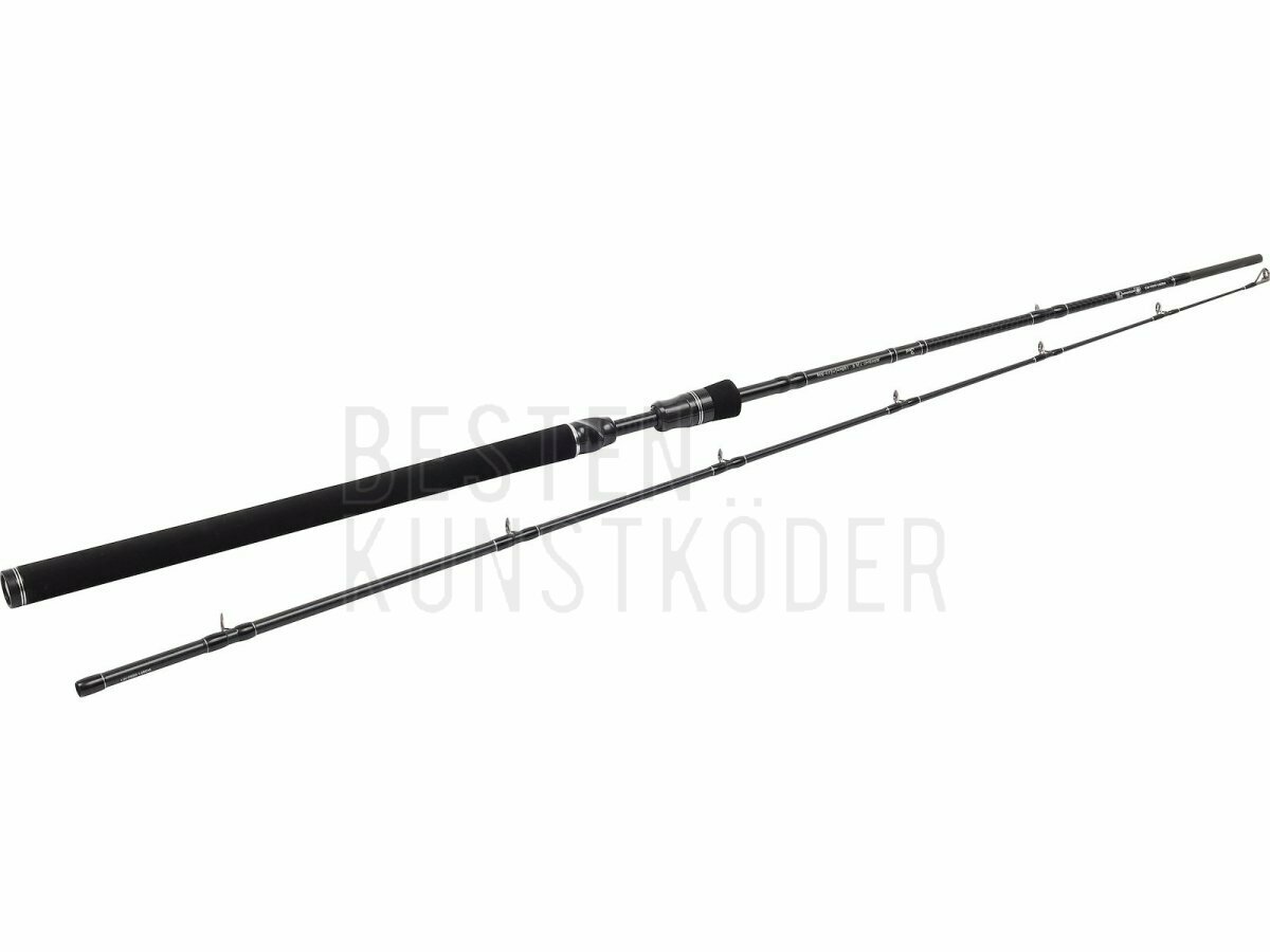 Die W3 Jerkbait-T 3rd Generation Ruten sind die perfekten Werkzeuge, wenn du vom Boot oder vom Ufer aus auf große, wilde Raubfische angelst. Diese Ruten mit mittlerer Aktion verfügen über die nötige Kraft und Stabilität, um mittelschwere bis schwere Swimbaits und Gummifische auszuwerfen, den Haken zu setzen und riesige Zander, große Hechte oder Welse an Land zu ziehen, während sie gleichzeitig sensibel genug sind, um eine einfache Handhabung zu ermöglichen. Selbst nach einem ganzen Tag auf dem Wasser, an dem du schwere Köder geworfen hast, wirst du dank des geringen Gewichts des Blanks nicht müde sein. Diese Rute wird perfekt durch eine Westin Baitcaster-Rolle der Größe 200 ergänzt.