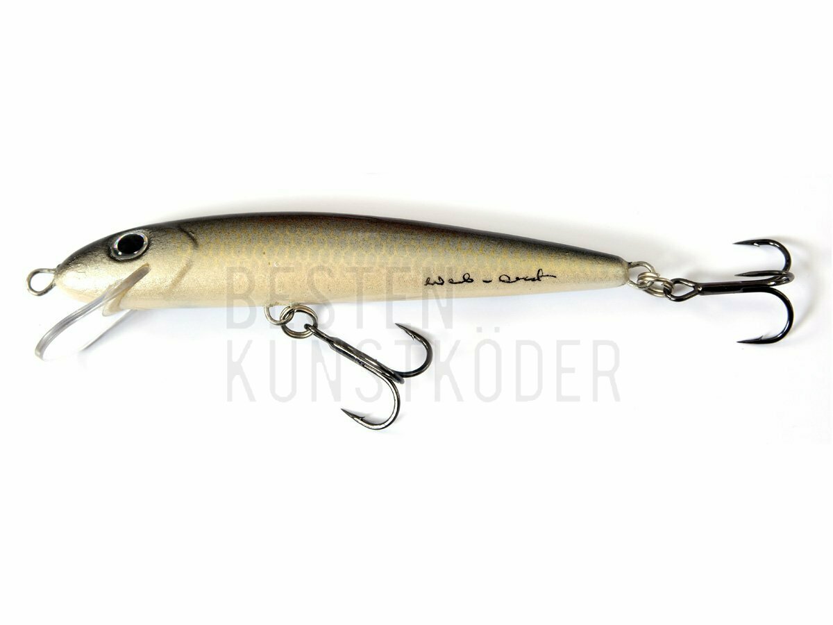 Wob-Art Jelec ist ein handgefertigter Wobbler, der in Form und Bewegung kleinen Köderfischen wie Döbel und Rotauge nachempfunden ist — natürliche Beutefische vieler Räuber. Diese Köder zeichnen sich durch hohe Detailtreue und lebhafte, schimmernde „X-Tail“-Aktion aus, die auch vorsichtige Fische reizt.