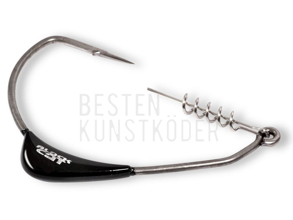Der Black Cat Mega Offset Hook ist der perfekte Haken um Gummifische in Kraut- und hindernisreichen Gewässern mit der Spinnrute zu Werfen und den Köder dabei durch den inliegenden Haken hängerfrei einzuholen. Am Hakenöhr wurde eine extralange Spiralhalterung (Shad Screw) montiert welche den sicheren Halt auch von großen und schweren Gummiködern gewährleistet und ein Ausreißen des Köders verhindert.