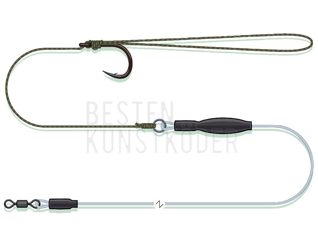 Wenn Sie Ihren Köder besonders auffällig machen müssen, kann eine Pop Up-Präsentation das Blatt wenden. Dieses Rig verfügt über eine antistatische, mit Schrumpfschlauch ummantelte Bleiolive, die selbst die auftriebsstärksten Pop