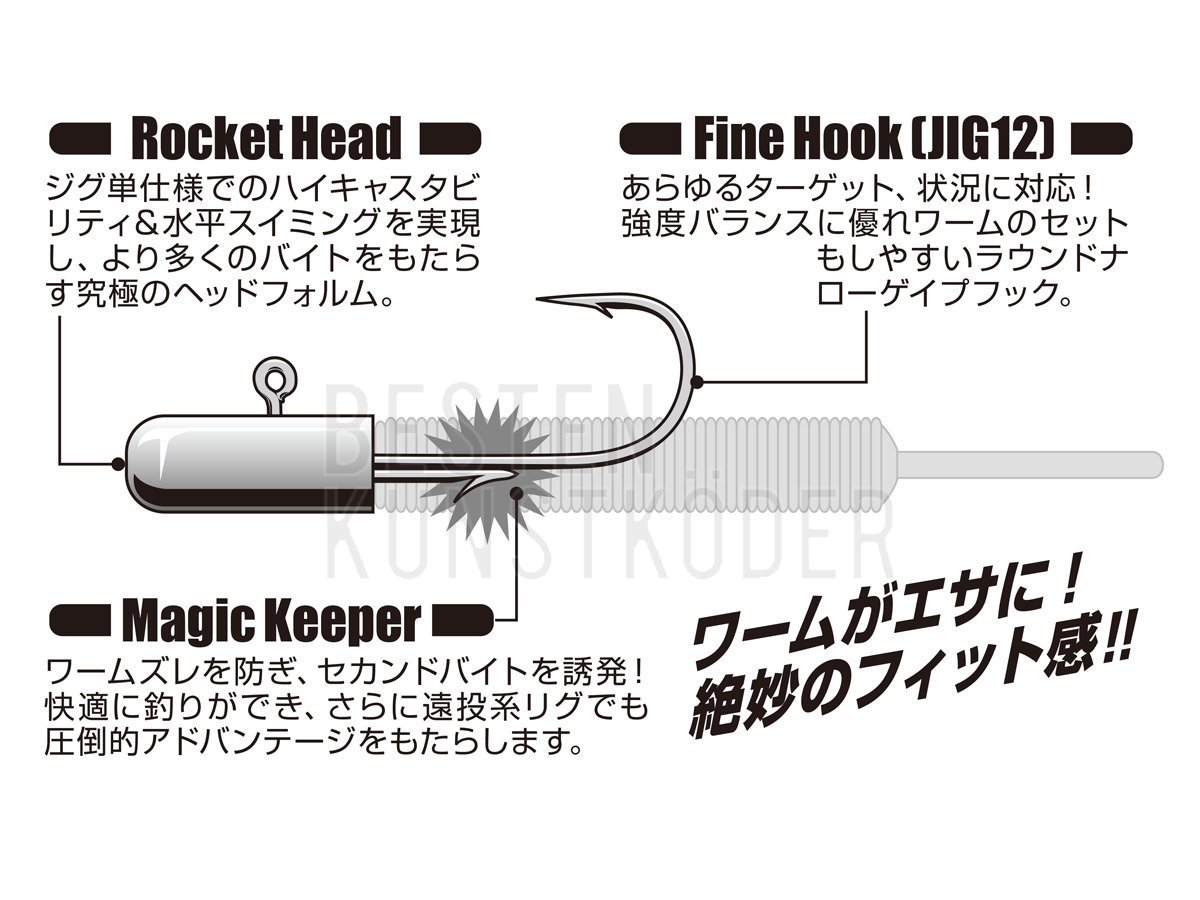 Der Decoy SV 70 ist ein kleiner JigKöpfen mit zylindrischem Bleigewicht. Es ermöglicht viele verschiedene Köderanimationen. Der Stift unter dem Hakenschenkel sorgt für perfekten Halt des Gummiköders.