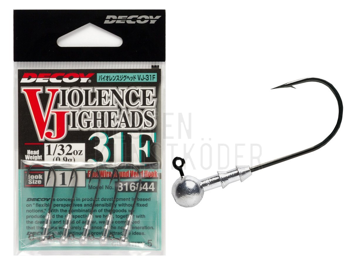 Die Decoy VJ-31F Violence Jighead Jigköpfe haben eine universelle 90° runde Form. Es kann sowohl zum Spinnfischen im Süßwasser als auch im Meer (Light Rock Fishing) verwendet werden.