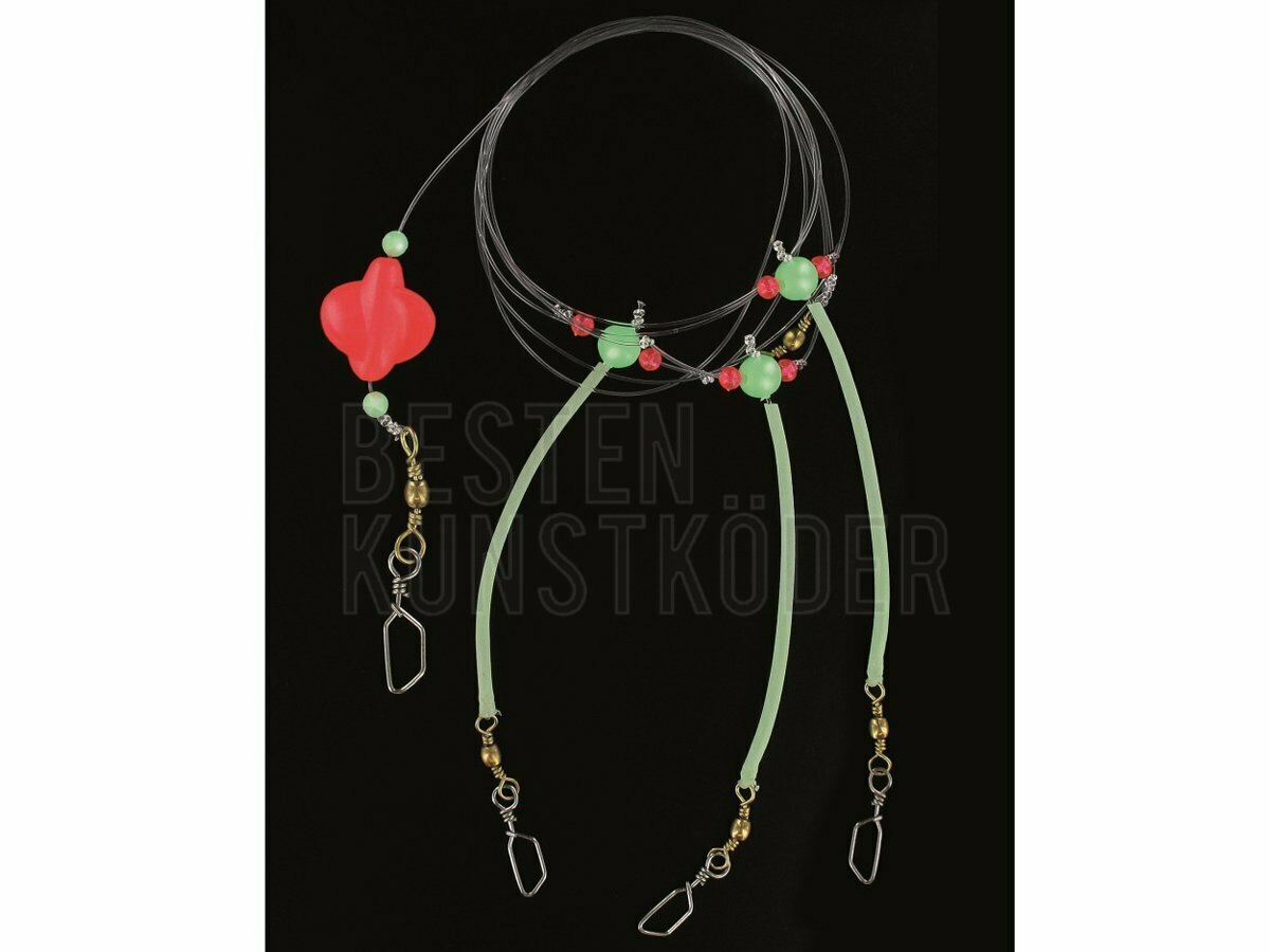 NORWEGEN Basisvorfach. Dieses Basisvorfach darf in keiner Angelkiste fehlen. Egal ob Sie auf Leng, Lump und Seewolf sowie Köhler, Dorsch oder Heilbutt angeln. Mit diesem Vorfach können Sie in Sekundenschnelle Ihren Köder wechseln und somit auf Ihren Zielfisch oder auf wechselnde Gewässerbedingungen oder Beißverhalten abstimmen. Einfach Basisvorfach an der Hauptschnur montieren und in die 2 oder 3 Seitenarme jeden beliebigen Köder einhängen - fertig. Während Ihre Angelkollegen noch das gesamte System wechseln, sind Sie mit dem passenden Köder bereits am Fisch. - Ein MUSS für Norwegen! -