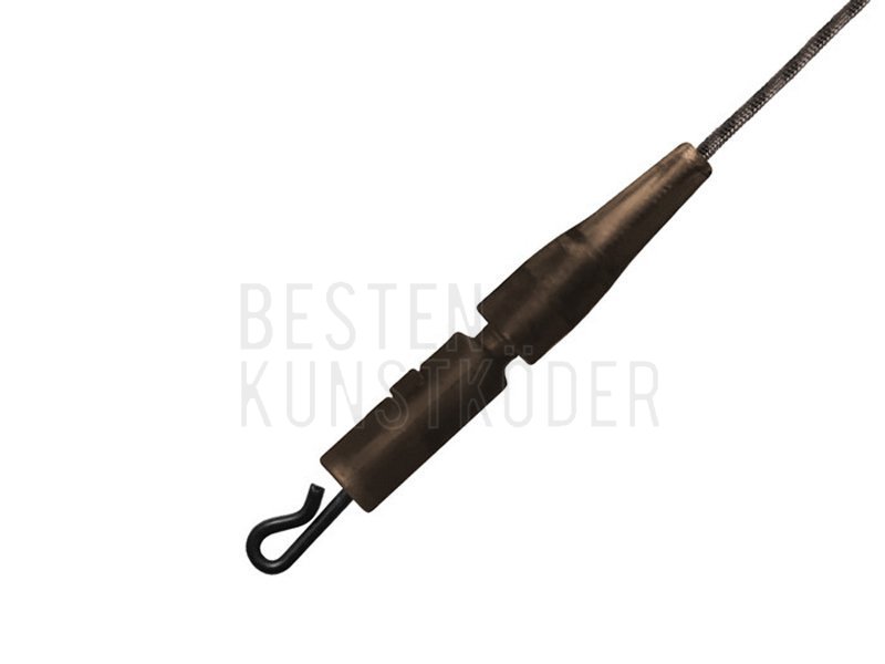 Drei fertige Vorfächer, Leadcore mit Bleikern. Der Delphin THE END Leadcore + PIN-Clip besteht aus einer drei Meter langen 45lbs belastbaren Leadcore-Schnur und drei Pin-Clip-Schnellclips, um den fertige Vorfächer, oder eine andere Komponente zu ersetzen. Am Ende der Leadcore mit Bleikern befindet sich eine Lasche. Diese Baugruppe wird an Stellen verwendet, an denen der Montage den Boden duplizieren muss. Die braune Tarnschnur passt sehr gut in die Umwelt des Wassers, besonders, wenn sich am Boden Schlamm befindet. Der Delphin THE END Leadcore + PIN-Clip besteht aus hochwertigen Materialien, sodass Sie sich bei jedem Karpfenfang darauf verlassen können.