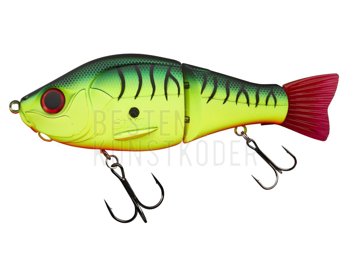Der SCUNNER 175 S ist ein zweiteiliger Gunki-Swimbait. Kompakt und doch voluminös, läuft der Köder unter der Oberfläche und verdrängt dabei viel Wasser, ohne zu stark an Ihrer Rutenspitze zu ziehen. Hat die Fähigkeit, selbst bei ultralangsamem Fischen läuft er in einer schönen S-Kurve, eine Eigenschaft, die große Hechte unwiderstehlich finden! Unter dem Kopf befindet sich eine Öse, um ein John-Weight einzuhängen und die Schwimmtiefe durch die Verwendung verschiedener Gewichte zu ändern. Somit können Sie verschiedene Wasserschichten erkunden und die Tiefe finden können, in der die Fische fressen. Die Bauchdrillinge sind drehbar an einem Wirbel befestigt. Austauschbarer Elastomer-Schwanz, bitte nicht zusammen mit anderen Softbaits lagern.