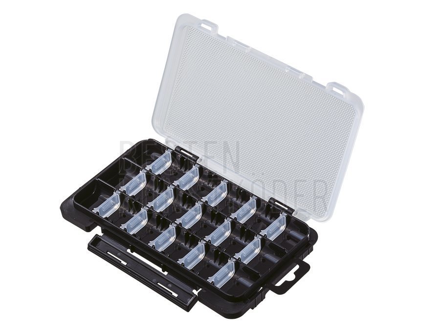 Die Box für Mikro-Köder. Eine ausgezeichnete Idee für Angler, die an kleinen und sehr kleinen Ködern angeln - eine handgroße Box mit einer Dicke von weniger als 2 cm. Leicht und handlich passt es in jede Weste, Jacke und jede Tasche. Sie kann bis in 18 Fächer unterteilt werden.