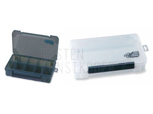 Eine Serie von sehr geräumigen Boxen, die in eine mittelgroße Tasche oder Rucksack reinpassen. Das Modell NDD ist eine Box mit erhöhter Tiefe der Box (8 cm). Sie ist eine ausgezeichnete Wahl für das halten der großen und mittleren Wobblern. Die Boxen der Serie „3043“ haben einen bequemen und sicheren Verschluss Typ „One Hand“, es ermöglicht das auf- und zumachen der Box mit nur einer Hand. Alle Boxen sind in den Farben: dunkelgrau oder transparent erhältlich.