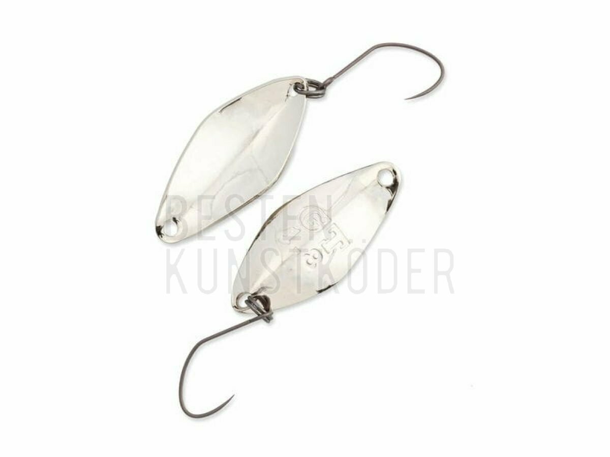 Masukuroto Gluttony 1,8 g Forellenlöffel von NORIES sind für die schnelle Suche nach aktiven Fischen konzipiert. Die gebogene Form erzeugt unter Wasser starke Druckwellen und sorgt für einen stabilen Betrieb auch bei höheren Wickelgeschwindigkeiten. Im Vergleich zur 2,3 g Variante kann der Masukuroto Gluttony 1,8 g etwas langsamer gefischt werden, um optimal auf die nachlassende Aktivität der Fische im Tagesverlauf zu reagieren. Der Spinner kann flacher gefischt werden und die Sinkzeit ist etwas länger, wodurch er länger im Interessengebiet unentschlossener Forellen bleibt.