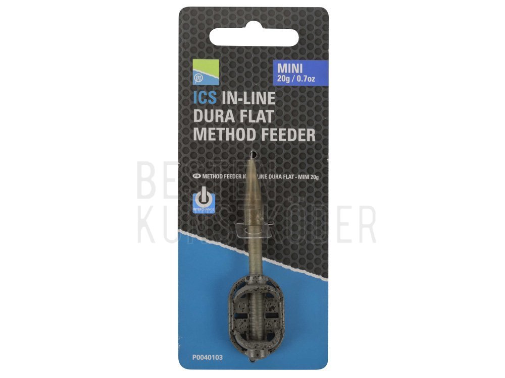 Auf dem erfolgreichen ICS Dura Flat Method Feeder basierend, ist der Mini die ideale Wahl, um kleine Ködermengen einzubringen. Des Shipp hatte großen Einfluss auf die Größe dieses Feeders. Das kompakte Design ist ideal für Gewässer, an denen die Fangrate hoch ist und regelmäßiges Auswerfen wichtig ist. Er eignet sich auch für den Einsatz bei kälterem Wetter, wenn die Bisse nur sporadisch kommen. Er besitzt den zusätzlichen Vorteil, dass er mit dem gesamten ICS-Sortiment austauschbar ist.