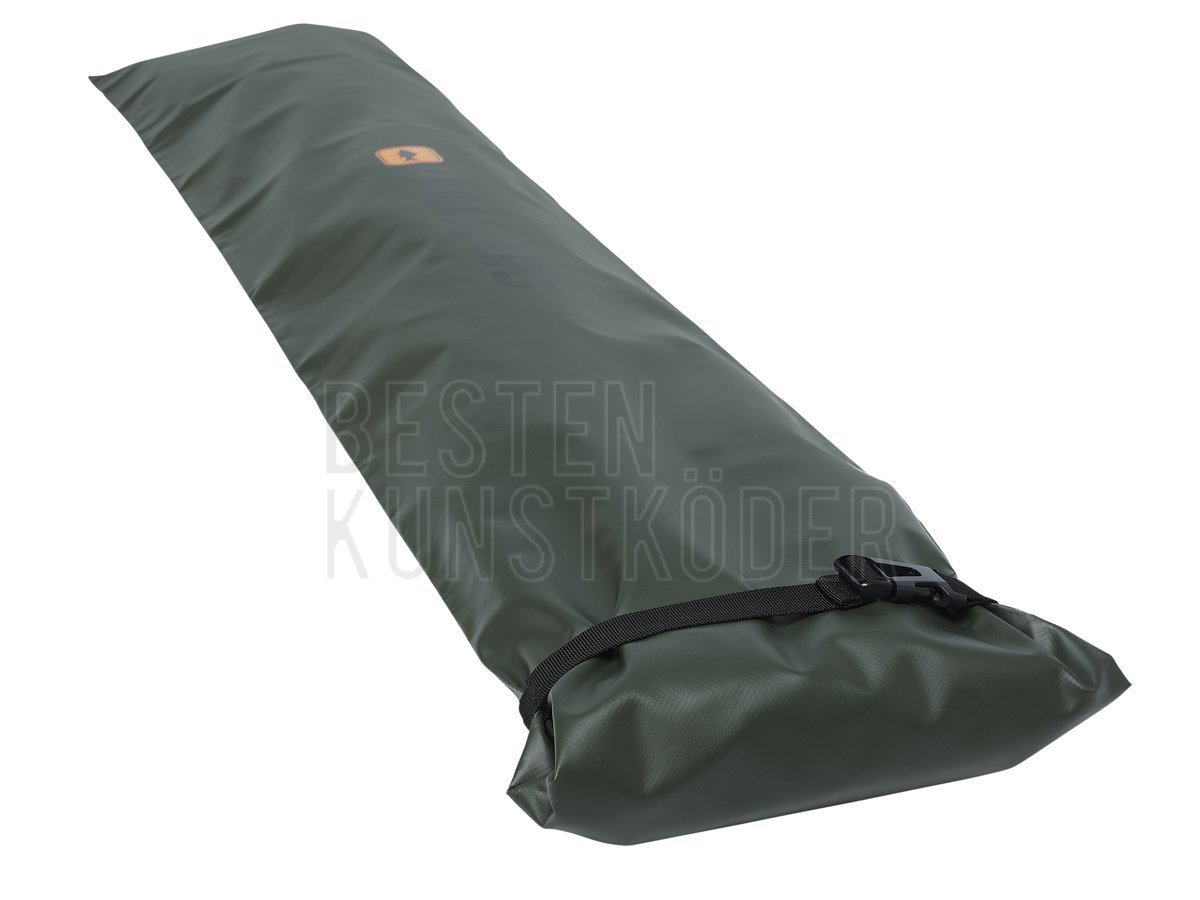 Wasserdichte Kescher- & Hälterschlingen-Tasche in der Größe 140 x 30cm: Eine komplett wasserdichte Schutztasche, die zwei Hälterschlingen oder sogar eine Kombination aus Kescherköpfen und Schlingen aufnimmt. Ein glattes und rutschiges Finish verhindert, dass Fischschleim oder Schlamm daran kleben, was wiederum gegen die Vermehrung von Bakterien hilft, die der Hauptgrund für die Entstehung von unangenehmen Gerüchen ist. Mit leicht zu bedienender Rollverschlussöffnung samt Sicherungs-Clip, die verhindert, dass Flüssigkeiten auf dem Transportweg entweichen.