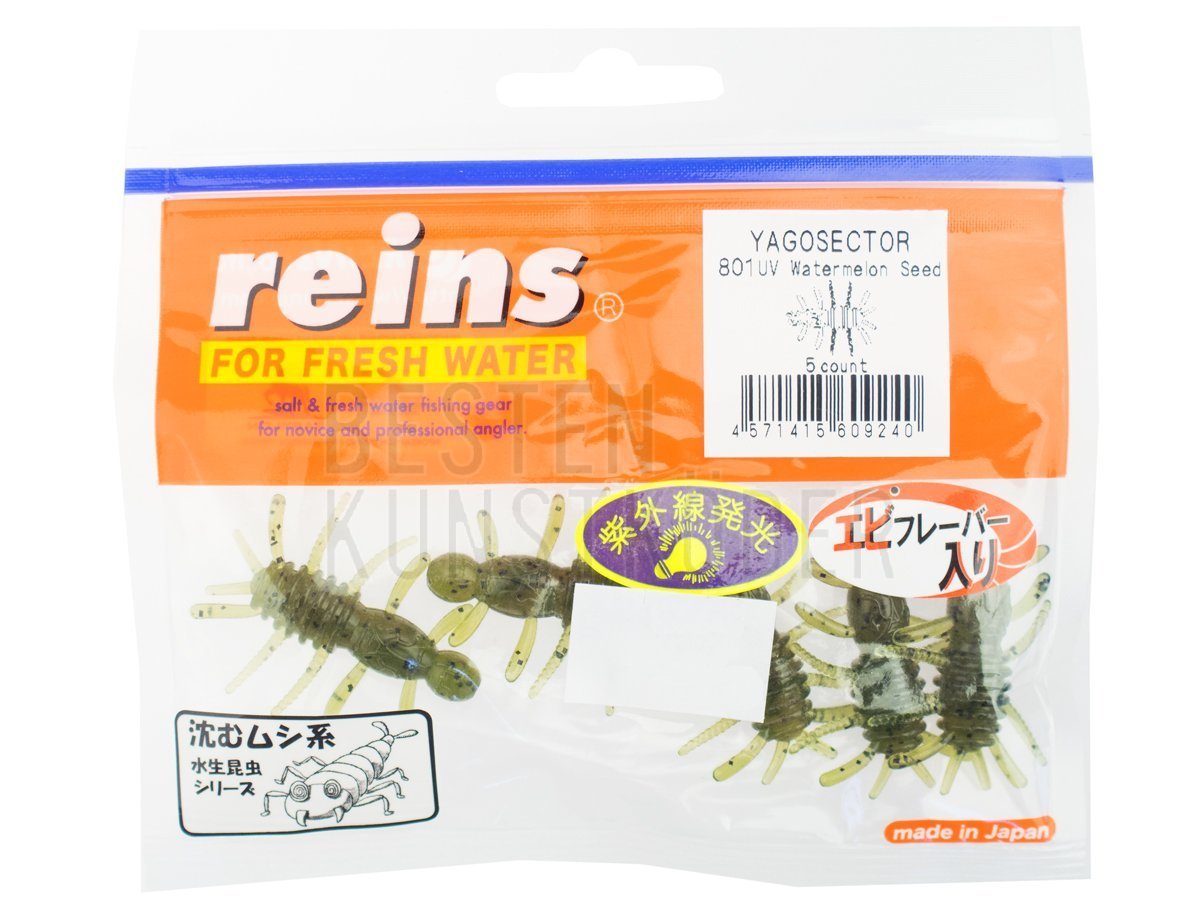 Der Köder Reins Yagosector ist eine Insekten-Imitation, die durch ihre Aktion auf der Wasseroberfläche Raubfische provoziert. Dank des verwendeten Materials arbeitet jedes Teil des Köders und vibriert stark. Er kann nach entsprechender Beschwerung auch auf dem Grund verwendet werden.