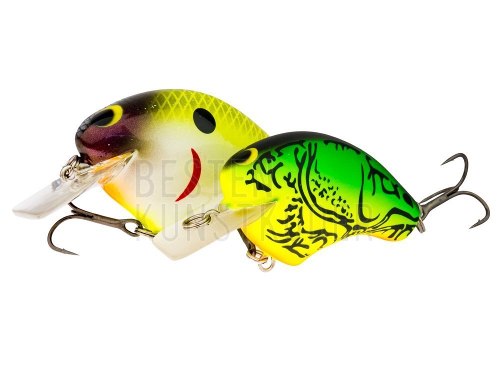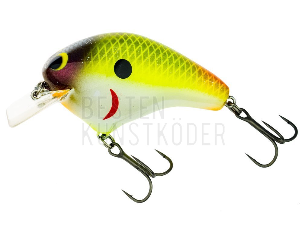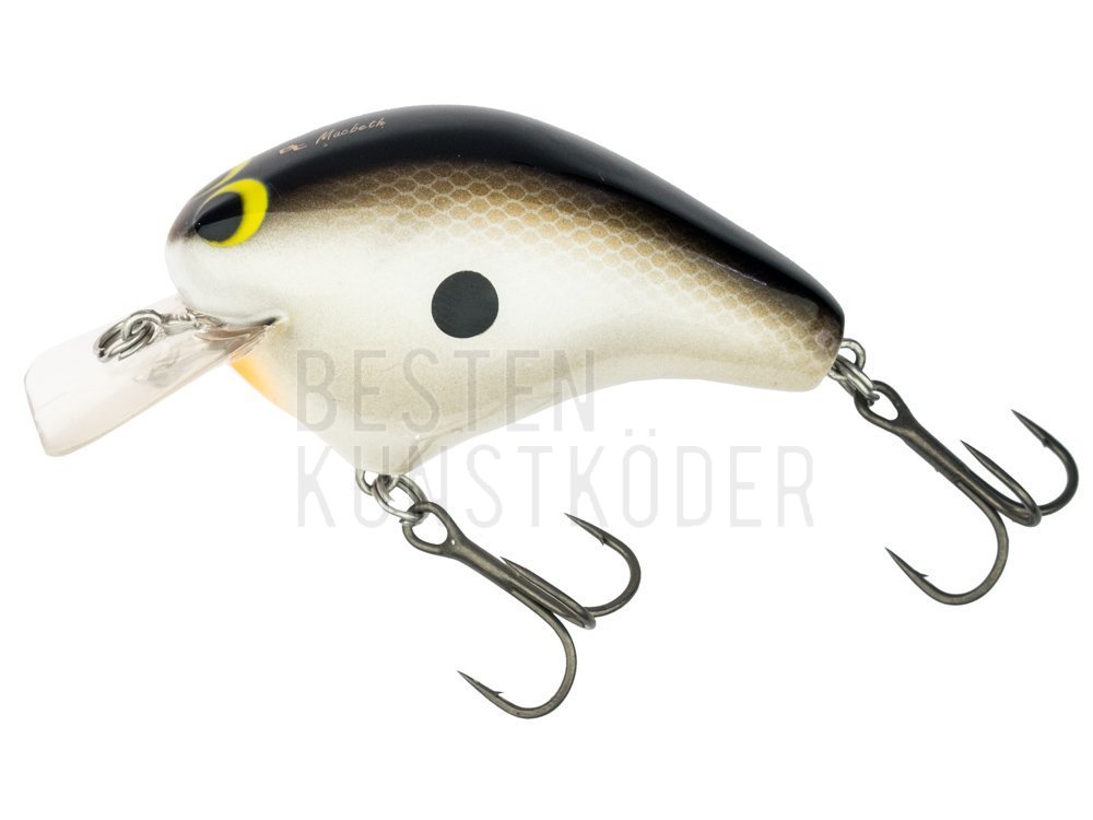 Der Shimano Bantam Macbeth ist ein bulliger, kurbelartiger Crankbait mit aggressiver, schnell anlaufender Aktion – entwickelt für schwierige Spots mit Holz, Ästen und anderen Hindernissen. Durch den verlagerten Schwerpunkt läuft der Köder „head-down“, prallt sauber ab und reduziert so Hänger.