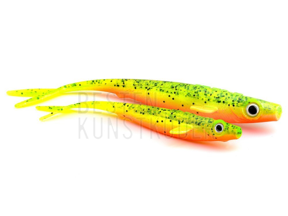 Die Spezialisten für Zander und Barsche wissen, dass Köder ohne Aktion der Schlüssel zum Erfolg sein können, wenn es um passive Raubfische geht. Die subtile und sanfte Aktion eines echten V-Tail-Gummifisches kann die Sinne großer und vorsichtiger Raubfische aktivieren, wenn andere Gummiköder ignoriert werden. Um Ihnen in solchen Situationen zu helfen, hat SPRO die Iris V-Power-Gummiköder entworfen und entwickelt. Mit seinem abgerundeten Körper, den übergroßen Brustflossen und der extra abgeflachten Schwanzflosse hat der V-Power ein ausgewogenes und einzigartiges Sinkverhalten. Dieser auf einem Jig oder am Drop-Shot-Rig montierte Gummiköder sinkt in Zeitlupe und hat eine sehr natürliche Wirkung. In Kombination mit attraktiven Farben und eingebauten UV-Aktivatoren kann dieser Gummiköder in schwierigen Situationen der Schlüssel zum Erfolg sein.