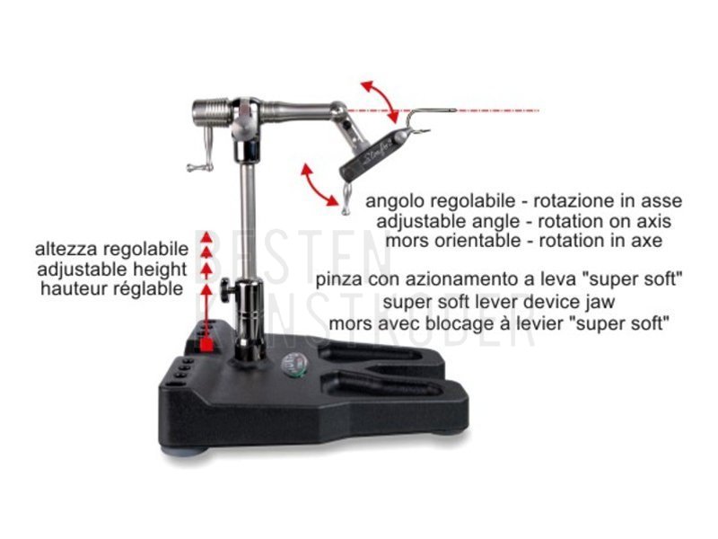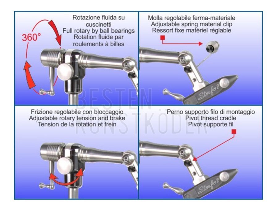 Hochwertiger Stonfo Elite Schraubstock mit Drehfunktion. Die Hauptteile bestehen aus Edelstahl und die Drehfunktion läuft reibungslos, da Kugellager verwendet werden, außerdem kann der Widerstand eingestellt werden.