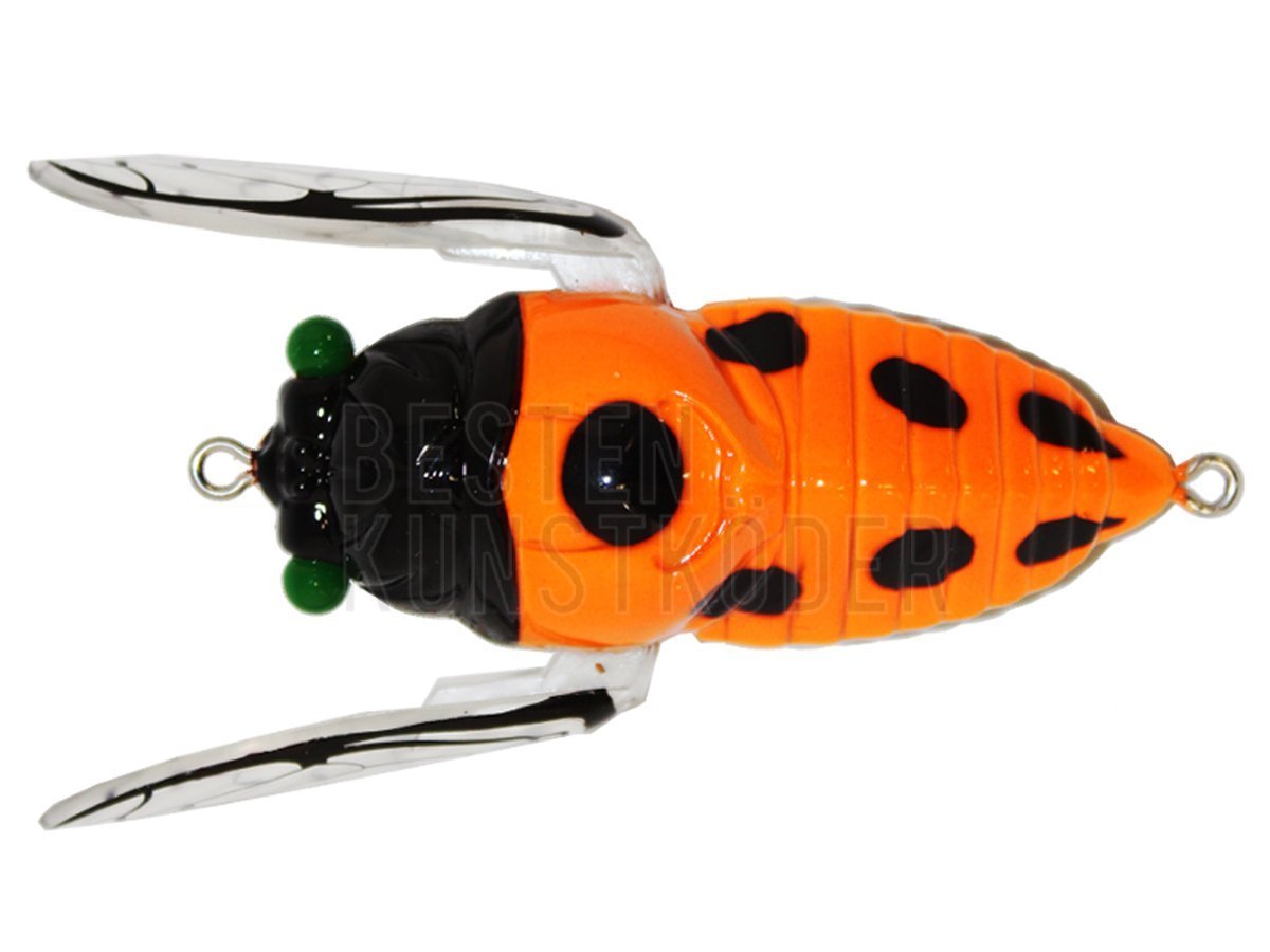 Eine Nachahmung eines riesigen Wurms. Der Oberflächenköder Tiemco Cicada Jumbo imitiert ein Insekt, das auf der Wasseroberfläche kämpft. Das große Volumen lockt große Fische an. Funktioniert auch bei sehr langsamem Aufrollen.