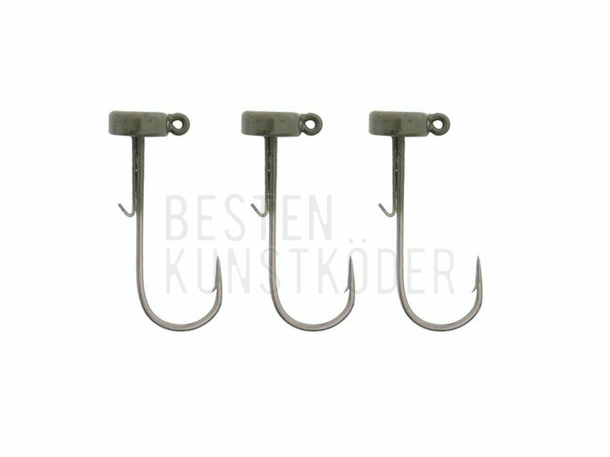 Durch die Verwendung von Wolfram, welches eine höhere Dichte als Blei aufweist, hat der Jigkopf im Vergleich zu einem Bleikopf ein deutlich geringeres Volumen, vermittelt ein besseres Gefühl für den Köder und ist umweltfreundlich. Durch das Fehlen eines Bleikragens am Haken wird eine Beschädigung empfindlicher Köder vermieden. Die verwendete Halterung hält den Softbait effektiv an seinem Platz, ohne ihn zu beschädigen. Diese Kopfform funktioniert hervorragend mit einer großen Auswahl an Ködern im Ned Rig-Stil. Es werden Mustad-Haken höchster Qualität verwendet.