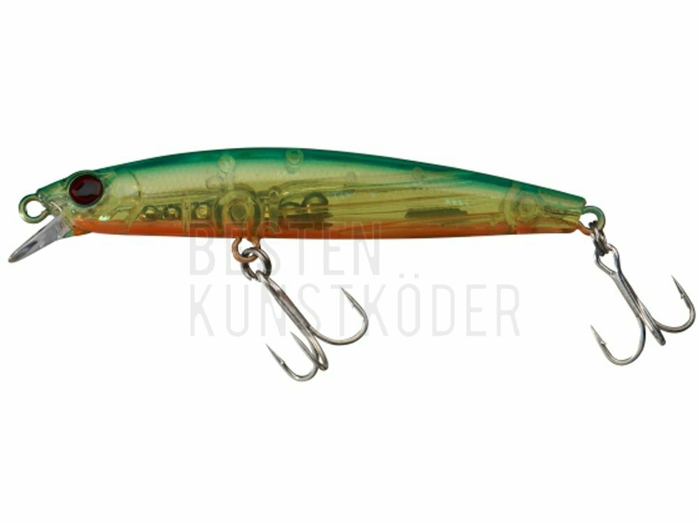 Die Suspending-Version unseres BATTLE MINNOW 80 ist ein fantastischer Jerkbait-Minnow, der sich für langsame Flüsse und Seen eignet, insbesondere wenn Räuber Schwärme von Jungfischen jagen. Der schlanke Körper und die kleine Lippe erzeugen bei langsamen Geschwindigkeiten eine lässige Schwimmbewegung, leichte Beute suggerierend. Wenn der Köder schneller gefischt wird läuft er nervöser, er schießt frenetisch und unkalkulierbar durch die Wassersäule, wenn er getwicht oder gejerkt wird. Er imitiert dann einen in Panik geratenen Fisch, ein Schlüsselreiz für den Raubfisch um zu attackieren. Der BATTLE MINNOW 80 SP verfügt über ein Gewichtsverlagerungssystem, um beim Wurf zusätzliche Meter zu gewinnen. Ideal zum leichten Angeln auf Barsch, Rapfen, Forelle, Döbel, Schwarzbarsch und Hecht.