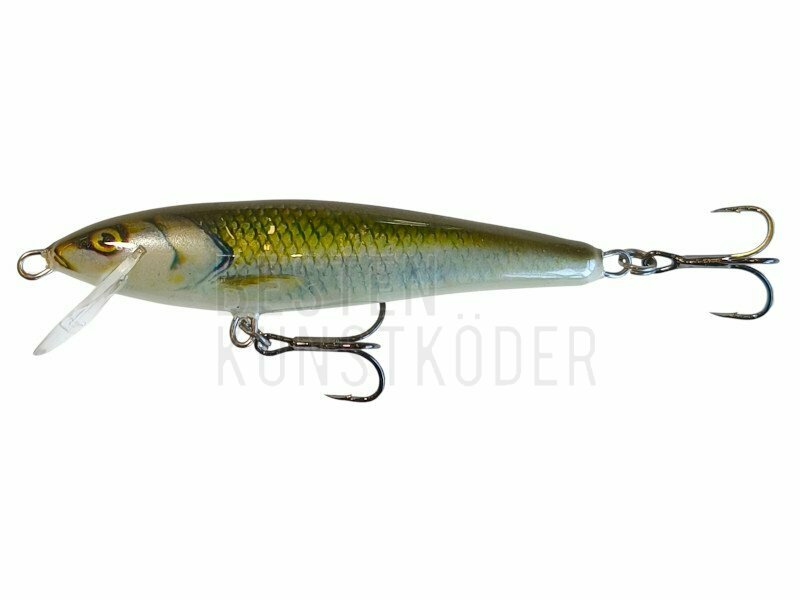 Der Fighter – Eine neue, sehr erfolgreiche Imitation. Dieser Wobbler ist vor allem für Rapfen und Zander bestimmt. Arbeitet sanft und hauptsächlich mit seinem vorderen Teil. Er läuft nicht unter einem Meter. Fighter sind gut auf Hecht, wenn sie weniger aktive Köder wollen. In Gebirgsflüssen kann man in den Sommermonaten auch versuchen, einen Huchen zu bekommen. Es ist ein sehr guter Wobbler fürs leichte schleppen. Schöne Barsche können auch mit diesem Wobbler gefangen werden.
