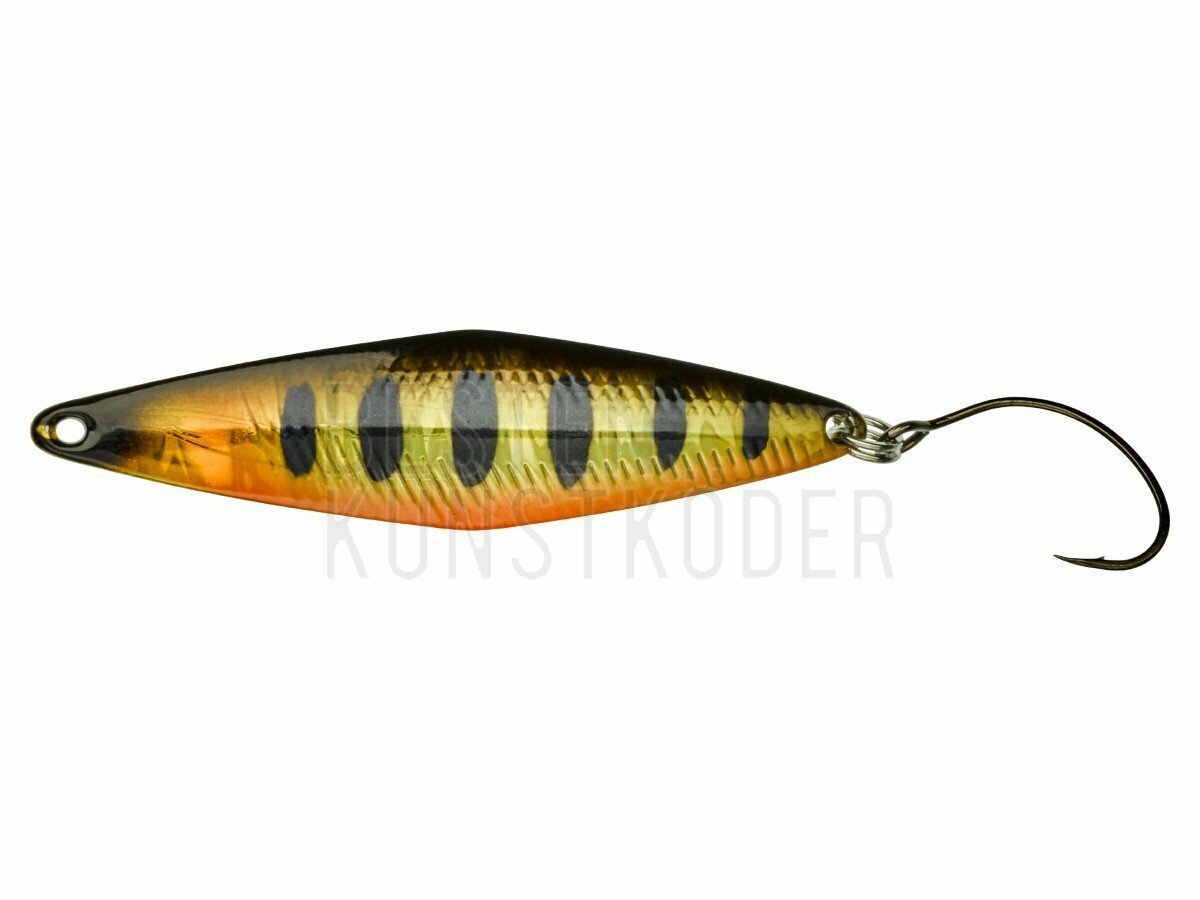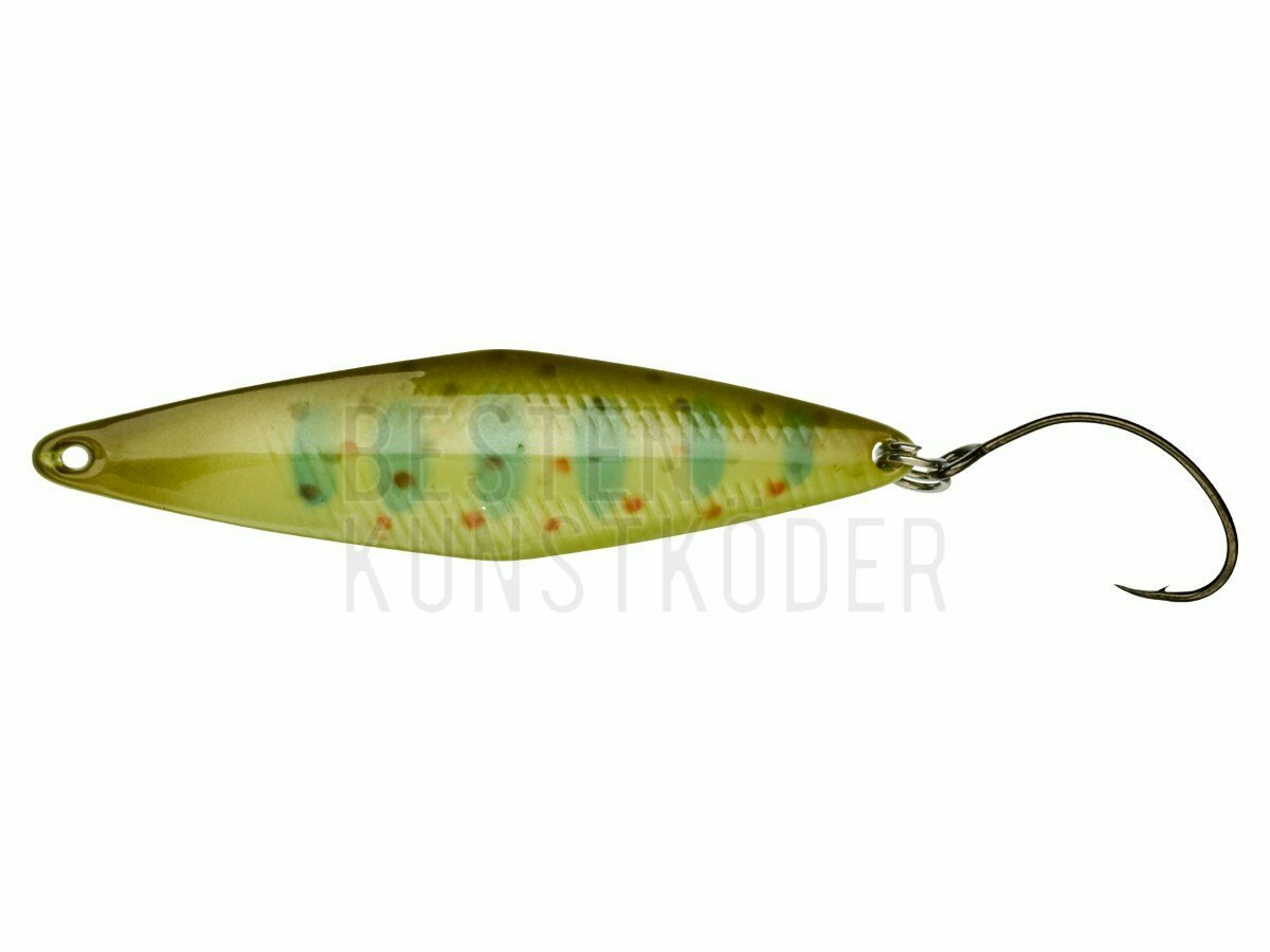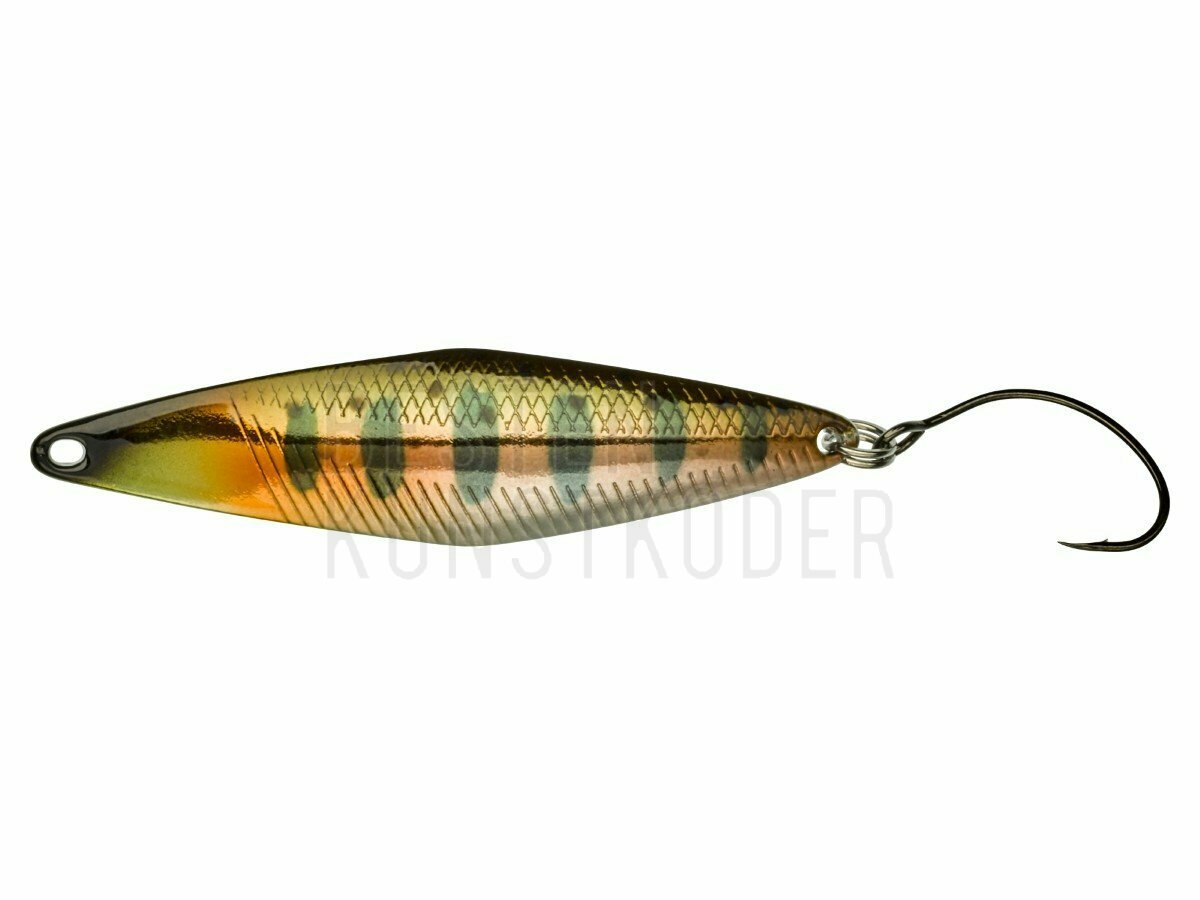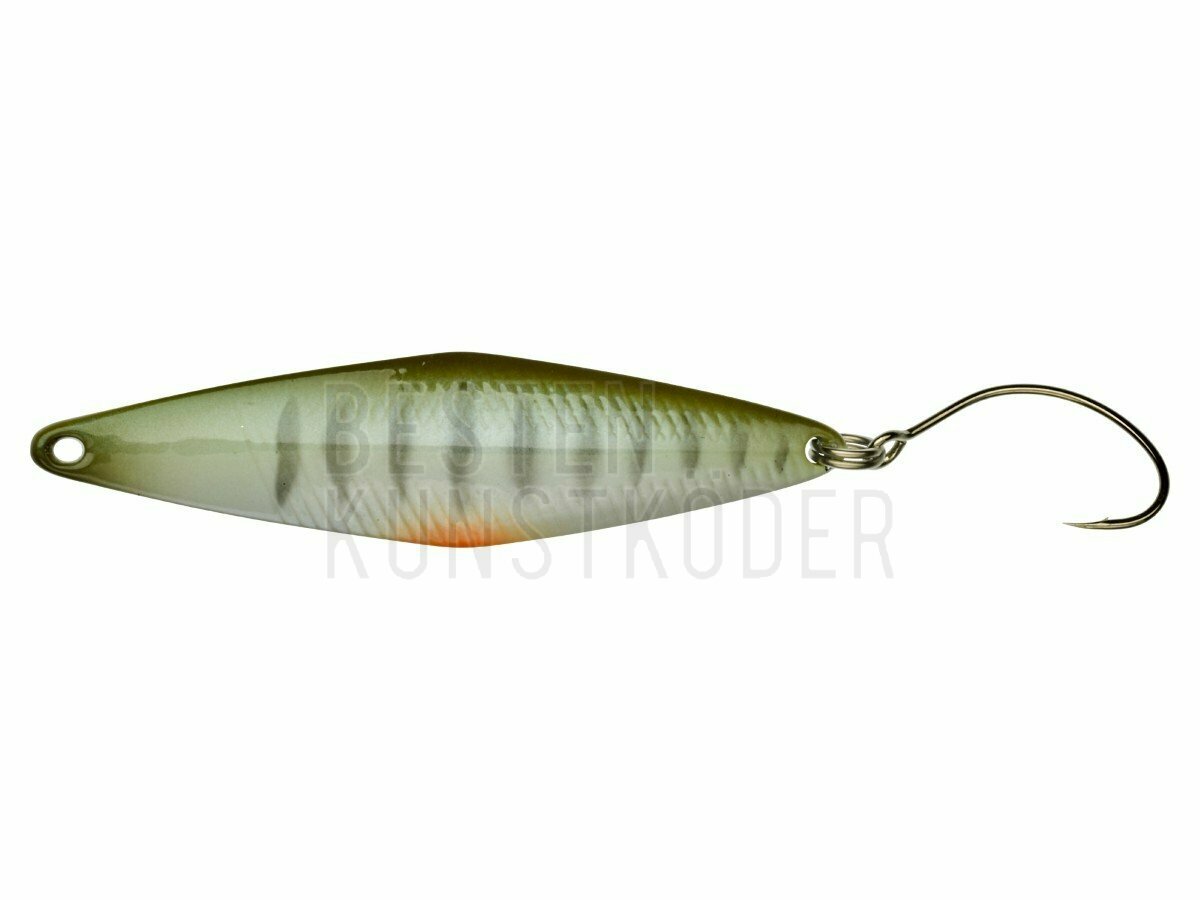 Der TRICOROLL SPOON ist die Spoon-Version unserer berühmten Tricoroll Wobbler und speziell für Salmoniden entworfen. Er hat die gleichen TRICOROLL 'rolling' Laufeigenschaften und ist darüber hinaus sehr stabil auch in der Strömung. Dies wurde erreicht durch seinen schlanken, ganz speziell gebogenen Körper, den Spoon davon abhält, hoch zu steigen oder in Rotation zu gehen, selbst bei turbulentem Strom. Darüber hinaus lässt sich der TRICOROLL SPOON auch noch sehr gut werfen. Perfekt für größere Salmoniden, große Seen und natürlich für Mefo!!