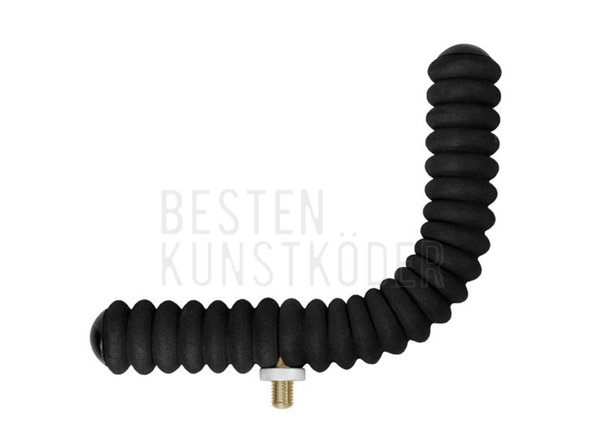 EVA SmallBEND ist ein L-förmiger Feederstabhalter. Seine Oberfläche besteht aus schwarzem EVA-Schaumstoff mit einer unregelmäßigen, gewellten Form. Diese Oberfläche schützt die Rute vor Beschädigungen und hält sie während der Jagd an Ort und Stelle, wodurch die Möglichkeit, dass die Rute auf den Boden fällt, deutlich reduziert wird. Der Halter verfügt über ein Universalgewinde, wodurch er mit allen handelsüblichen Feederständern, Abstandshaltern oder anderen Halterungen kompatibel ist.