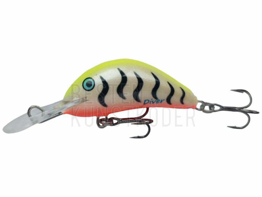 Der Diver ist fürs leichte Spinnfischen. In großen Flüssen kann man den vorderen Haken entfernen und durch eine Bleikugel ersetzen. Eine größere kann man hinten befestigen. Dann haben wir einen ausgezeichneten Köder für Barben. Der Diver ist ein guter Forellenköder. In der T-farbigen Version, stellte er sich als richtiger Killer heraus. Wobbler Diver - Seine sehr aggressive Aktion ist gut wahrnehmbar über die Rutenspitze.