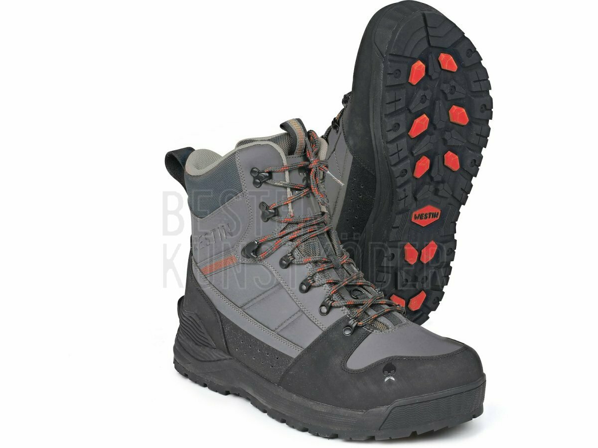 Die Westin W6 Watstiefel sind dein perfekter Partner, wenn du in extremem Gelände zu weit entfernten Angelplätzen vordringen willst. Diese strapazierfähigen Watstiefel wurden mit Blick auf Komfort und Stabilität entwickelt und sind in einer Vielzahl von Größen erhältlich, um immer die perfekte Passform zu bieten. Diese mittelhohen Watstiefel aus strapazierfähigen Materialien sind robust und dennoch leicht genug, um den ganzen Tag über bequem getragen werden zu können. Wähle zwischen einer rutschfesten Gummisohle oder Filzmodellen, je nach den Bedingungen in deinem Revier. Dank der eingearbeiteten Stollenmarkierungen an der Gummisohle lassen sich die mitgelieferten Stollen leicht anbringen, um rutschige Ufer zu meistern. Die stabile Innensohlenkonstruktion sorgt für mehr Stabilität und Laufkomfort, auch auf schwierigem Gelände. Ganz gleich, wie die Bedingungen sind, mit den Westin W6 Watstiefeln kannst du lange und bequem angeln.