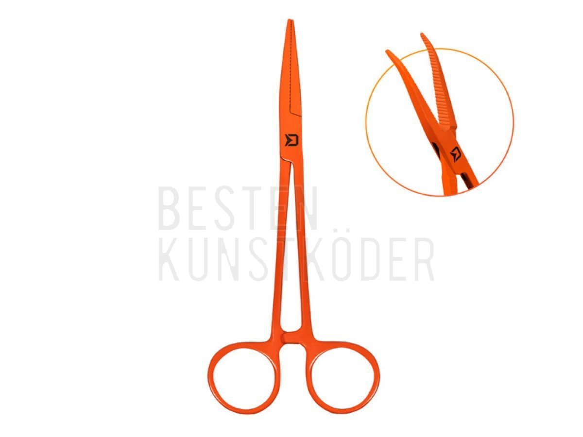 Pean Delphin ATAK! REFLEX mit gebogenen Backen ist eine Angelhilfe, die dazu dient, den Haken sanft aus dem Maul des Fisches zu lösen. Es besteht aus hochwertigem Stahl und die Innenseite der Backen ist mit Zähnen ausgestattet, die den Haken besser greifen können. Auf den ersten Blick fällt der Pean durch seine leuchtend orange Farbe auf, dank der er in Ihrer Angelausrüstung nicht verloren geht und Sie ihn immer leicht erkennen können. Darüber hinaus gibt es ein schwarzes Delphin-Logo an der Kreuzung.