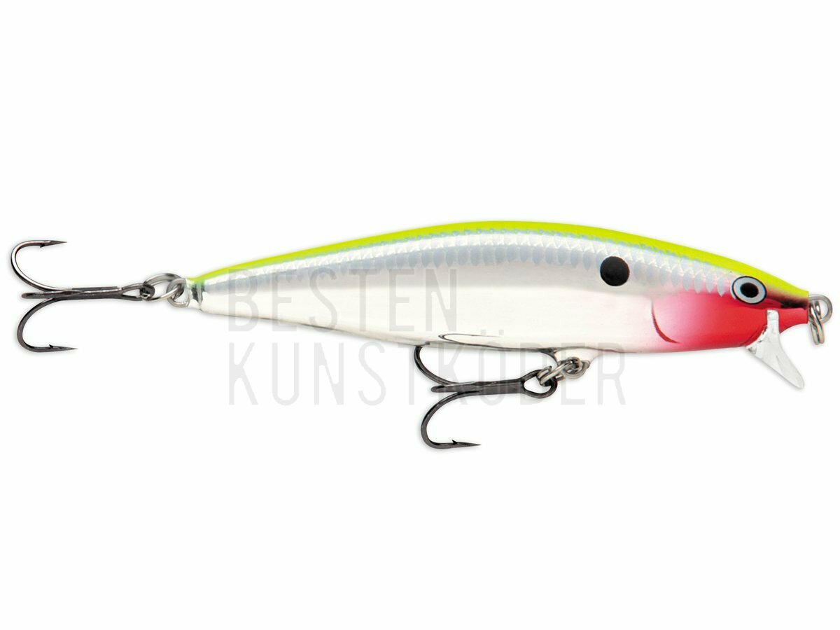Aus Balsa und beim Spinnstopp langsam aufsteigend. Der Flat Rap® schwimmt mit einer hart flankenden Abwandlung der klassischen Rapala® "wounded-minnow"-Aktion. Die dreieckige Tauchschaufel hilft bei der Erzeugung der einzigartigen, schnelleren aufflankenden Aktion, während sie Hindernisse, die sich ihr in den Weg stellen, ableitet. Geradezu klebrig scharfe VMC® Black- Nickelhaken. Von Hand abgestimmt und im Wasserbecken getestet, um sicherzustellen, dass er die Aktion zeigt, für die Rapala® bekannt ist.