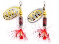 Bonnie Blade ist ein bekannter und äußerst wirksamer Spinner von Lucky John. Diese Köder verbinden moderne Konstruktionslösungen, die zuverlässige und stabile Arbeit gewährleisten und sie vor allem für jeden Raubfisch sehr attraktiv machen. Hauptbestandteil des Spinners ist ein Messingblatt, das auch bei minimaler Geschwindigkeit beim Drehen im Wasser phänomenale dynamische Eigenschaften hat.
